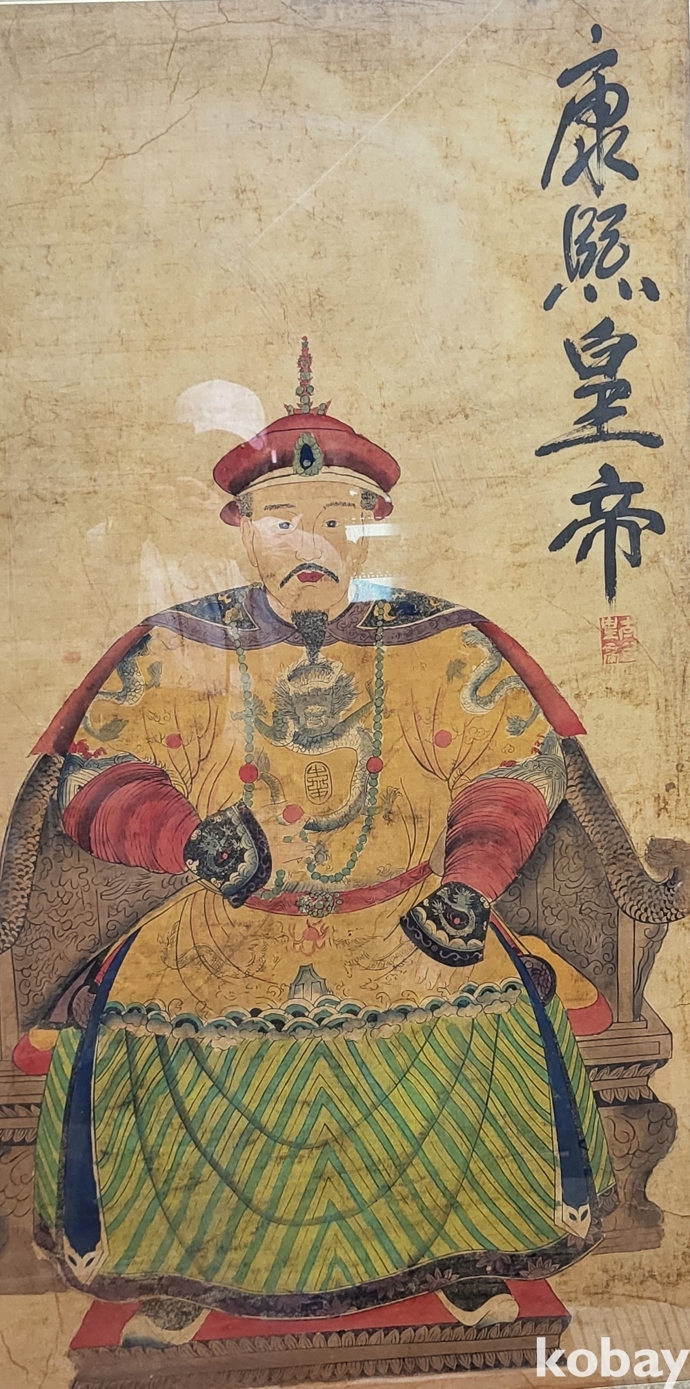 청나라 강희황제(康熙帝帝) 어진(御眞) 으로 종이에 채색되었읍니다,