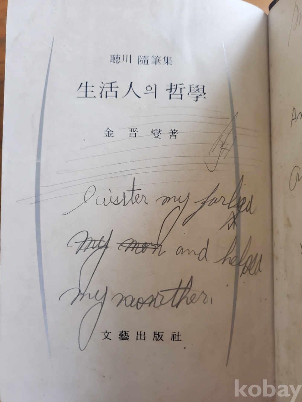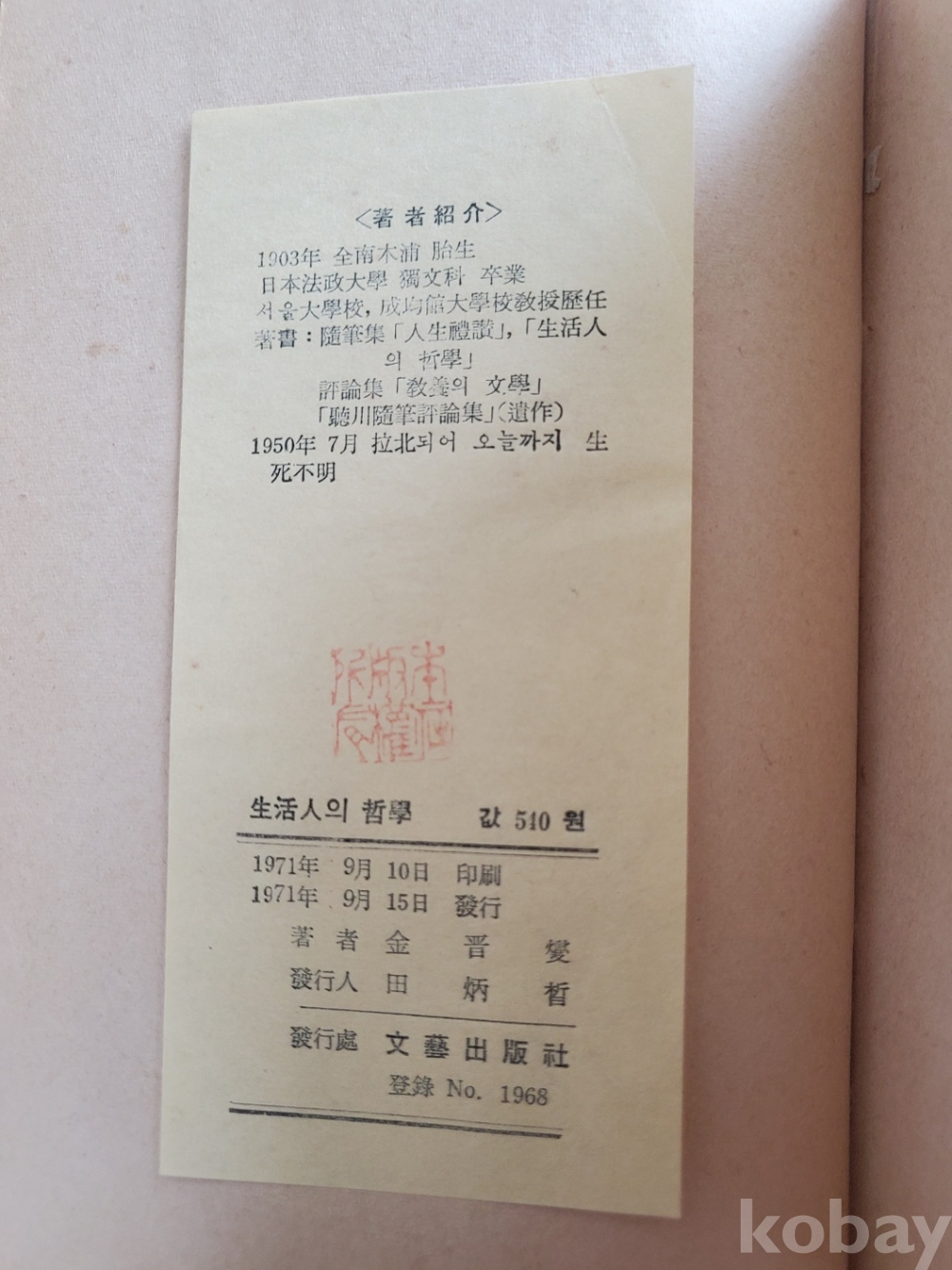 1. 생활인의 철학, 김진섭, 문예출판사, 1971년, 304쪽, 상태 상, 사진 참조