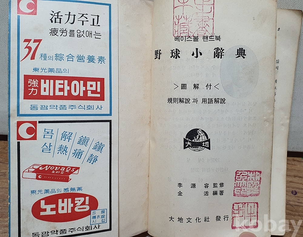 판매자 물품에 초창기 야구공과 야구책도 함께 올려져 있습니다