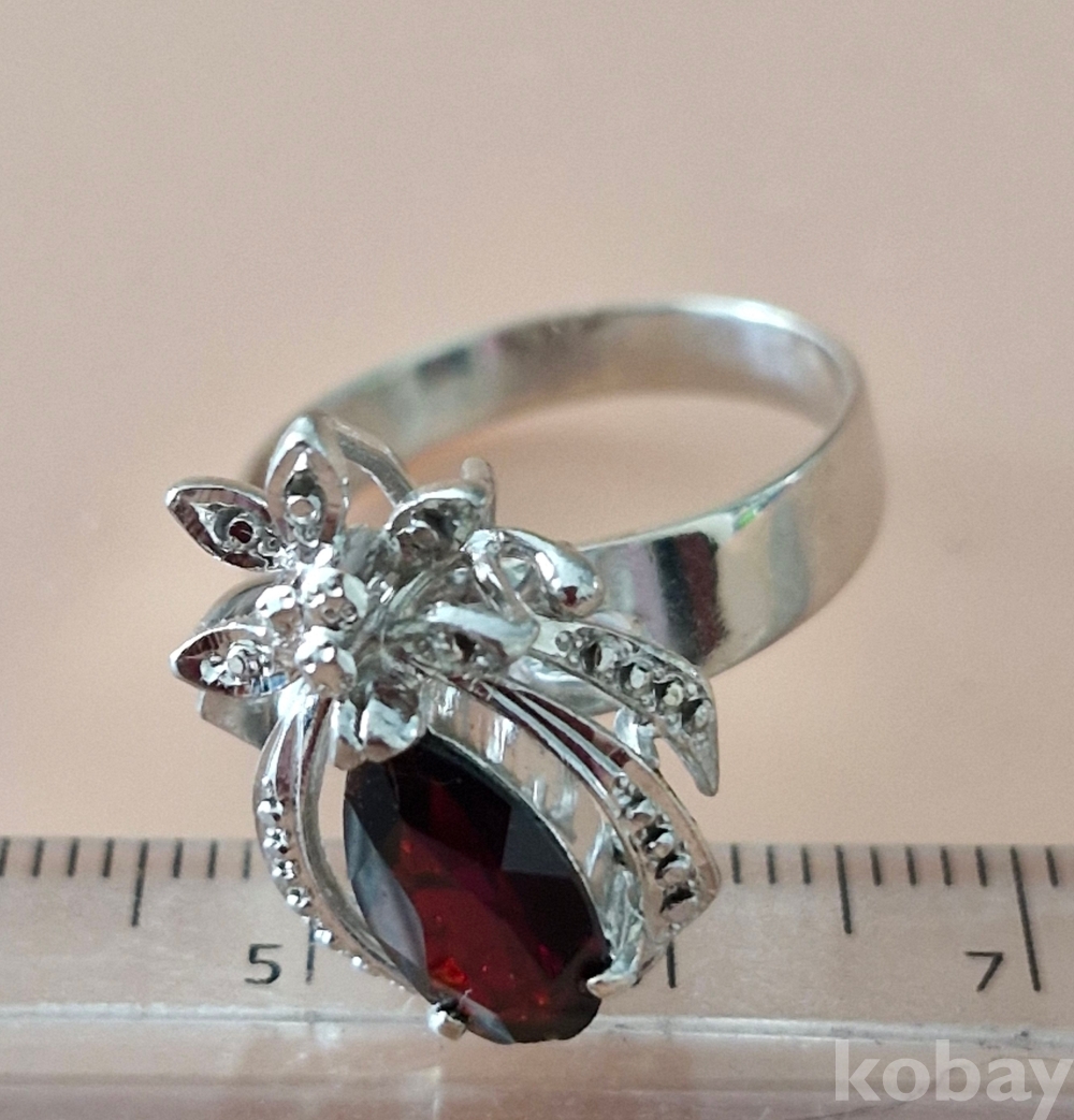 가넷을 중심으로 큐빅을 박고 정교하게 잘 만든 반지입니다.