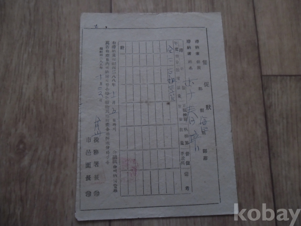 1955년 전주세무서 발행 독촉장