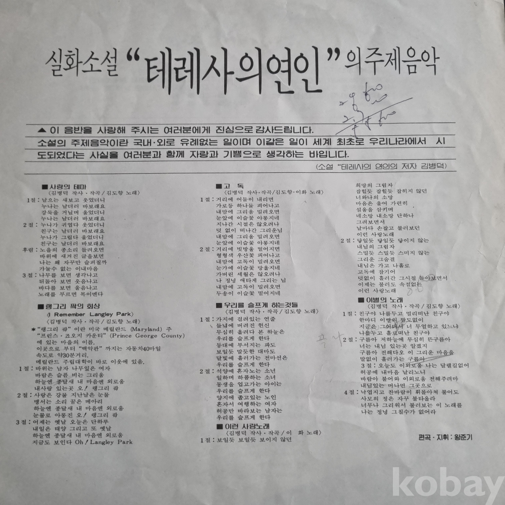 실화소설 '테레사의 연인'의 주제음악 김병덕 작품 태광