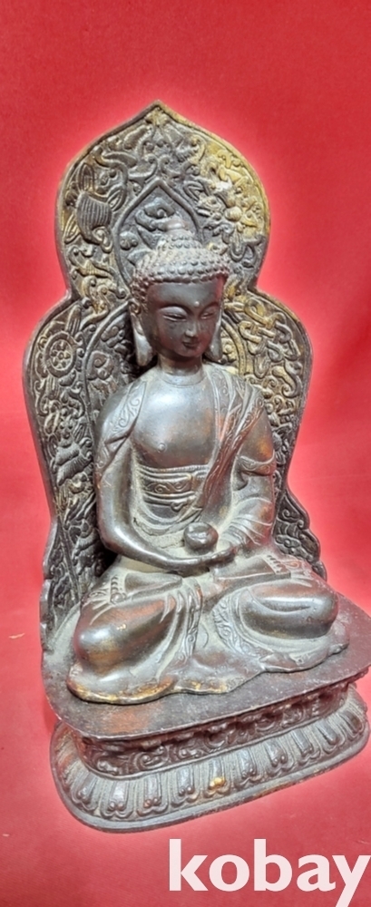 높은 연대를 갖춘 금동 광배가 분리되는 화대위에 좌정한 약사여래 좌불상입니다,