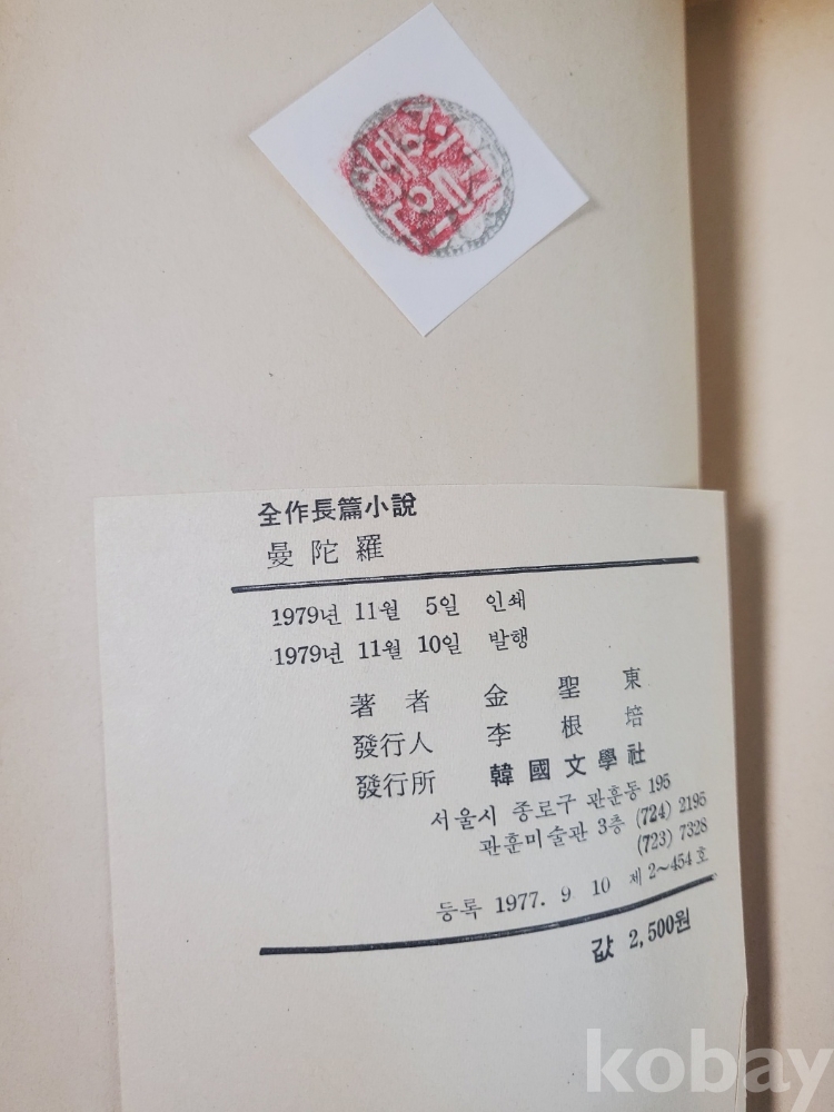 1. 만다라, 김성동, 한국문학사, 1979년 초판, 291쪽, 전작장편소설, 상태 상, 사진 참조