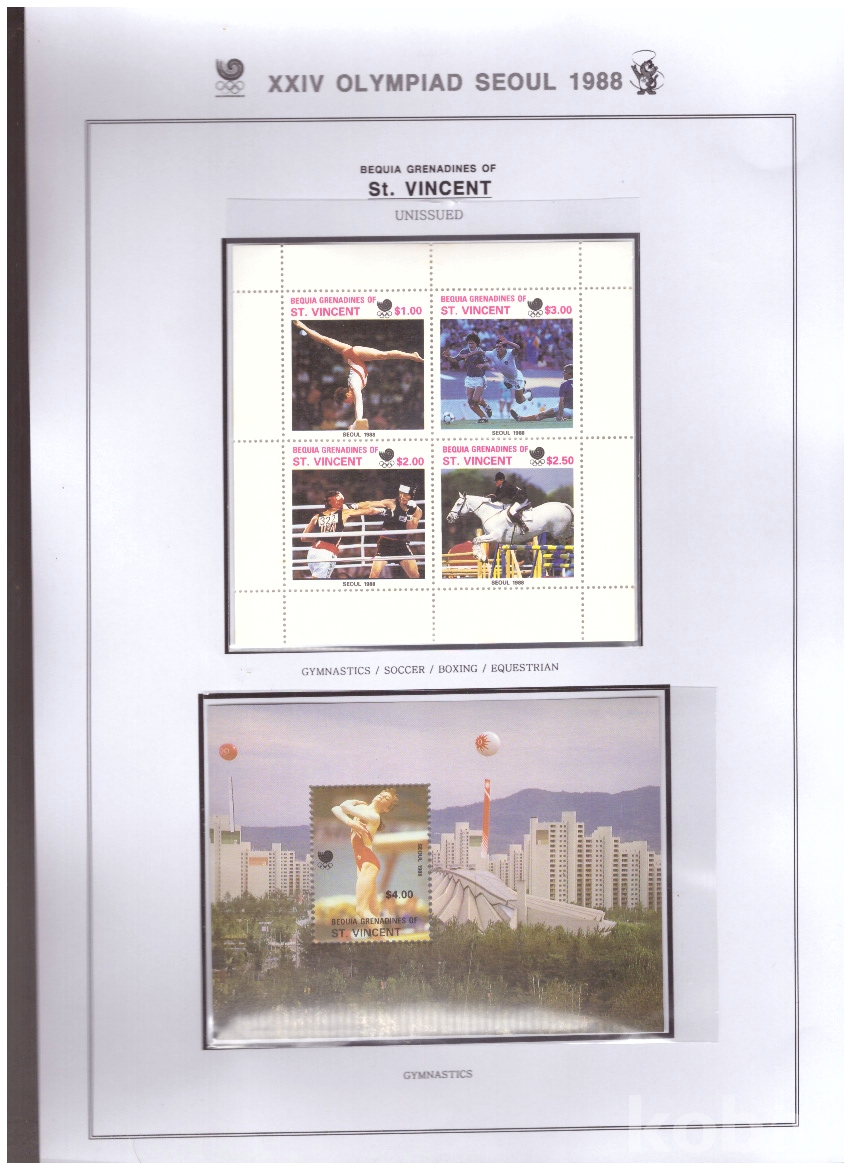 (서울올림픽) Bequia Grenadines of St. Vincent (세인트 빈센트) 1988 (미발행) 여자체조외 sheet of 4+s/s MNH