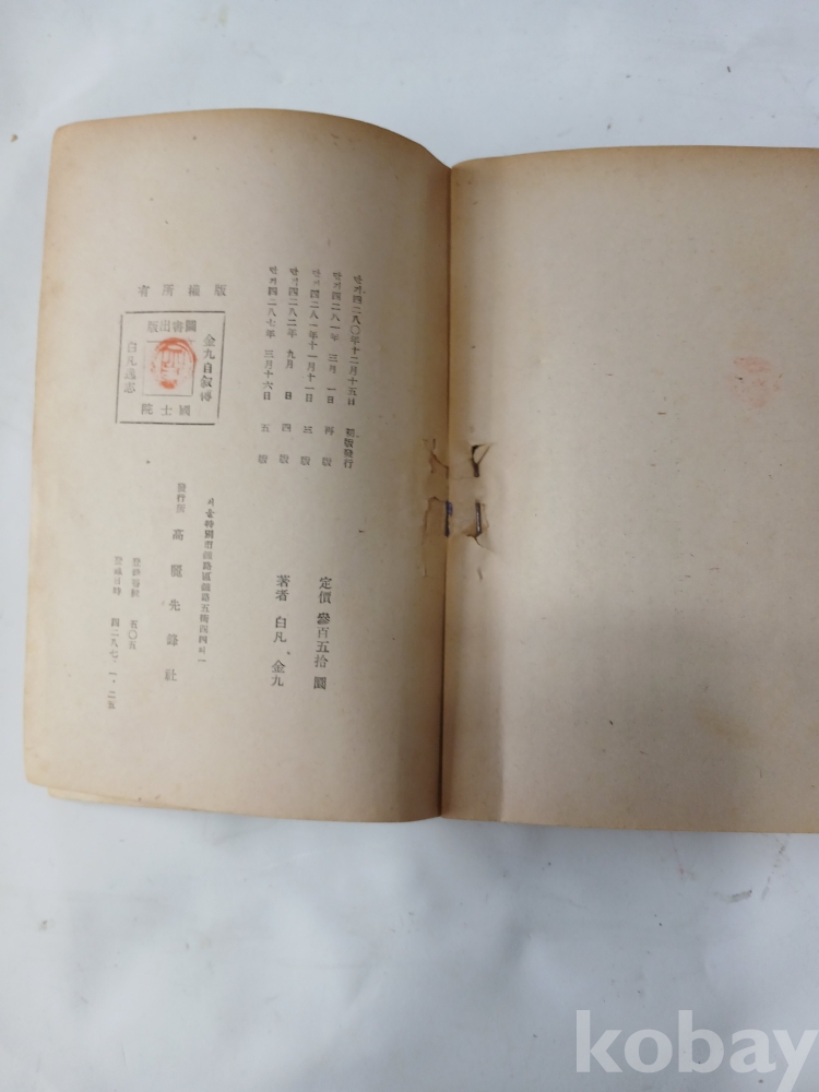 1947년에 나온 백범일지 초간본과 같은 시리즈 입니다.