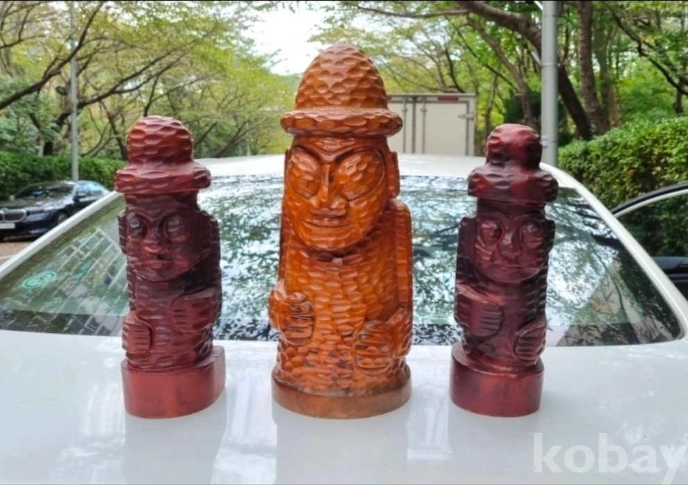 원목 통나무 제주도 하루방 3종 세트 일괄ㆍ싸이즈 크네요ㆍ높이 44 묵직합니다