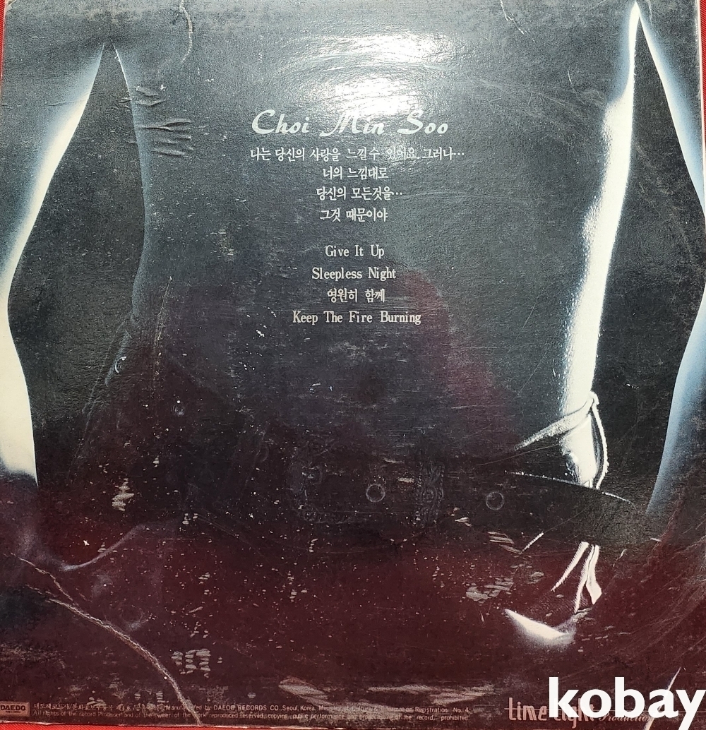 | 자켓상태 | EX : 약간의 마모, 모서리 찢김 존재 | 음반상태 | VG : 생활 기스 다수, 가벼운 노이즈 존재 | 발매정보 | 알수없음 | 가사지여부 | 무 |