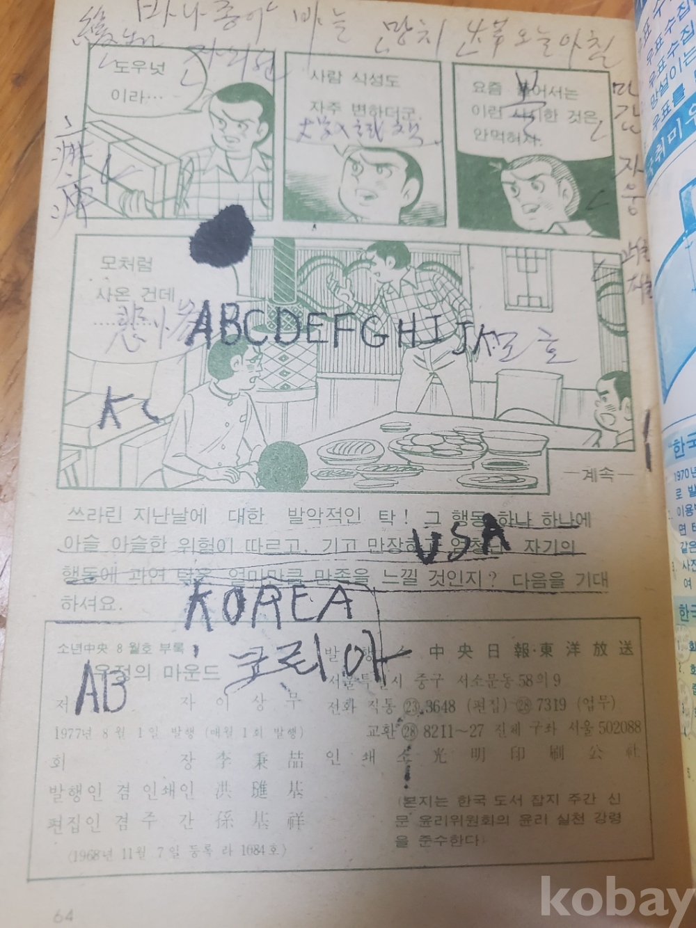 1. 우정의 마운드 16, 이상무, 중앙일보 ․ 동양방송, 1977년, 64쪽, 소년중앙 부록, 상태 상, 사진 참조