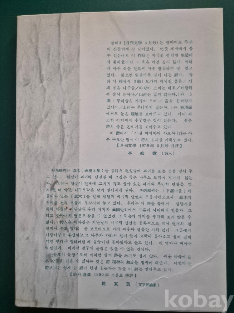 詩文學社에서 발행. 101쪽. 14.7X20.9X0.9cm