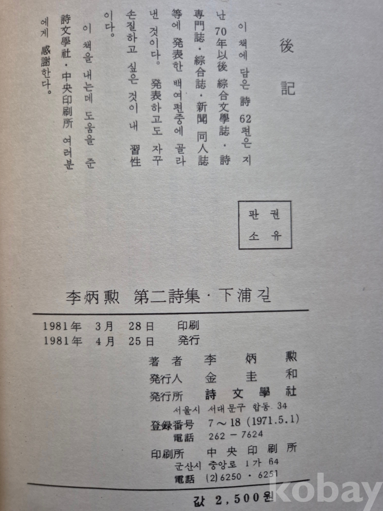 1981년 발간한 제2시집 『下浦길』