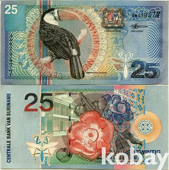 세상에서 가장 이쁜 지폐 / 수리남 3종 2000년 (5 / 10/ 25굴덴)