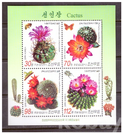 (식물) 북한 2011.8.5 선인장 sheetlet of 4 MNH
