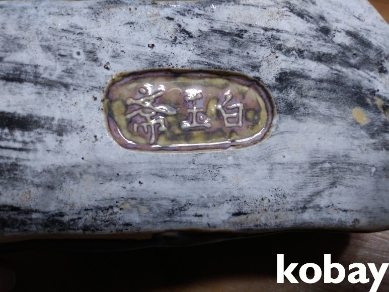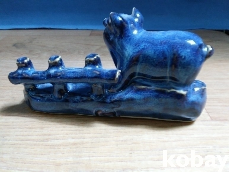 돼지 형상의 필새 도자기 입니다.