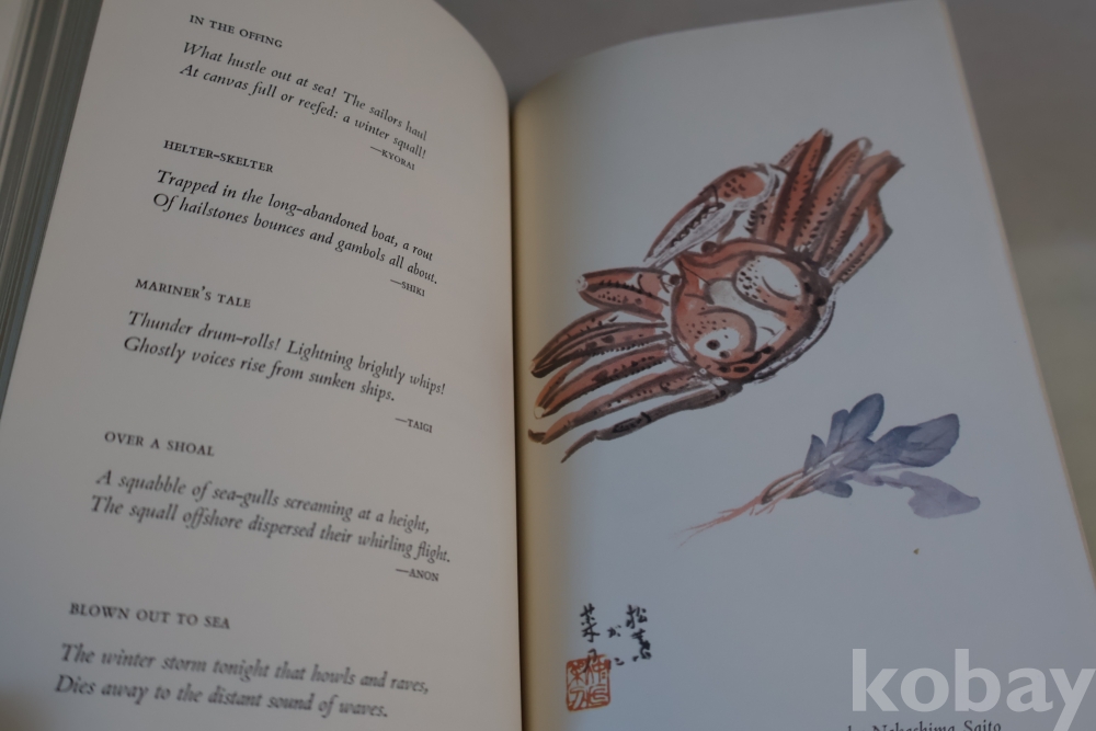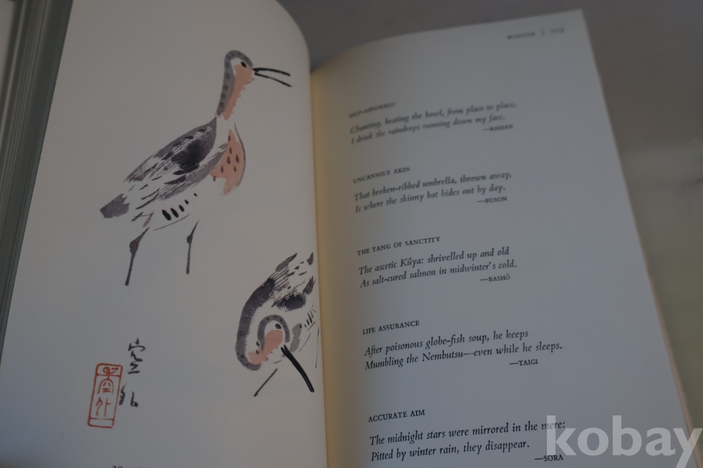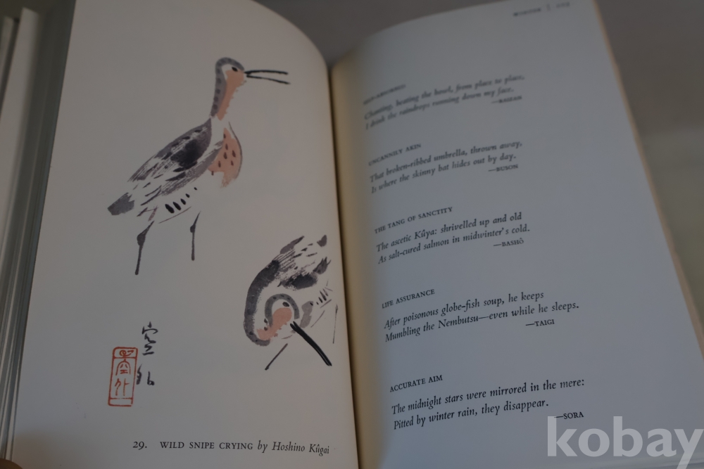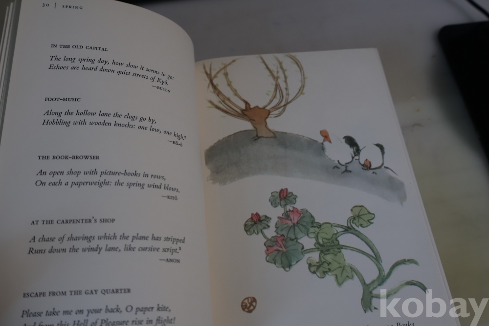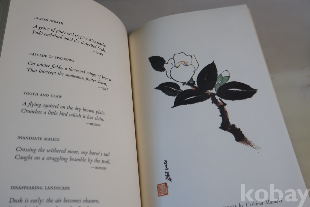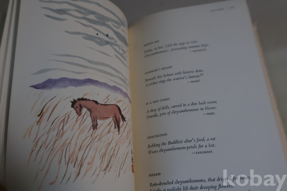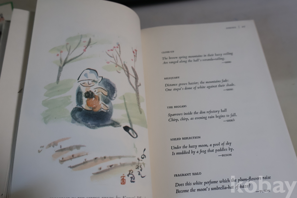 일본 제작 귀한 하이쿠 책 임니다 전통 방식으로만든 명저 이며 1978년도 판 이며 33개의 칼라 하이쿠 그림을 가진 명저 임니다 케이스는 세월의 흔적을 가진 낙정없는 236페이지 임니다
