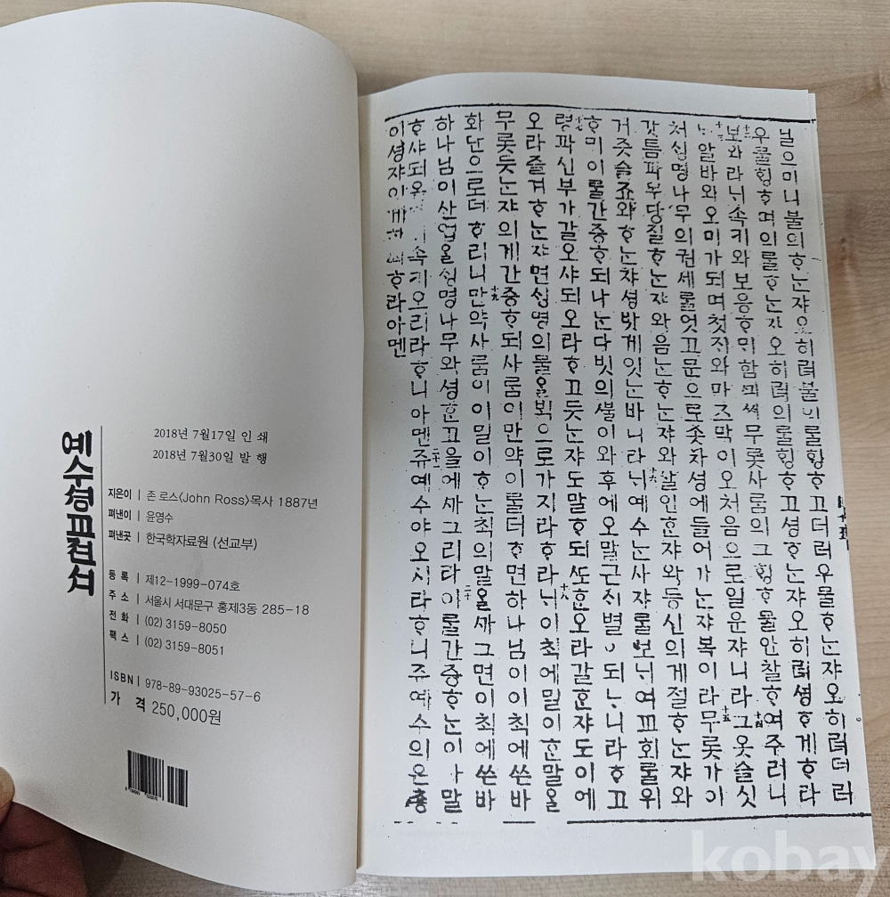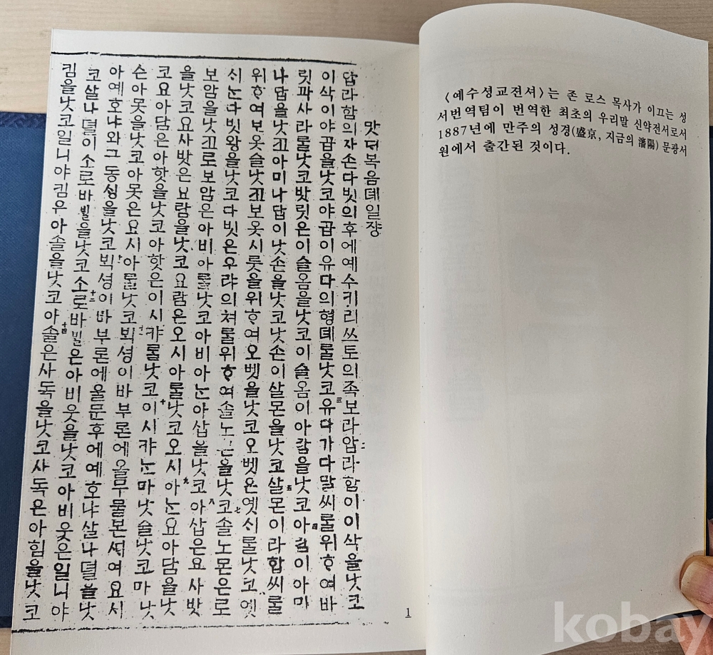중국 심양 문광서원에서 인쇄된 최초의 한글 신약전서이다(네이버)