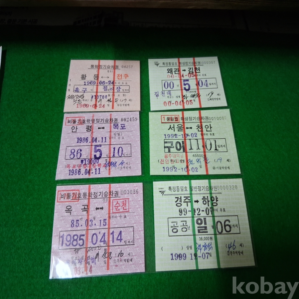 한국철도 통학비들기,통일호,정기승차권 6매 사용제