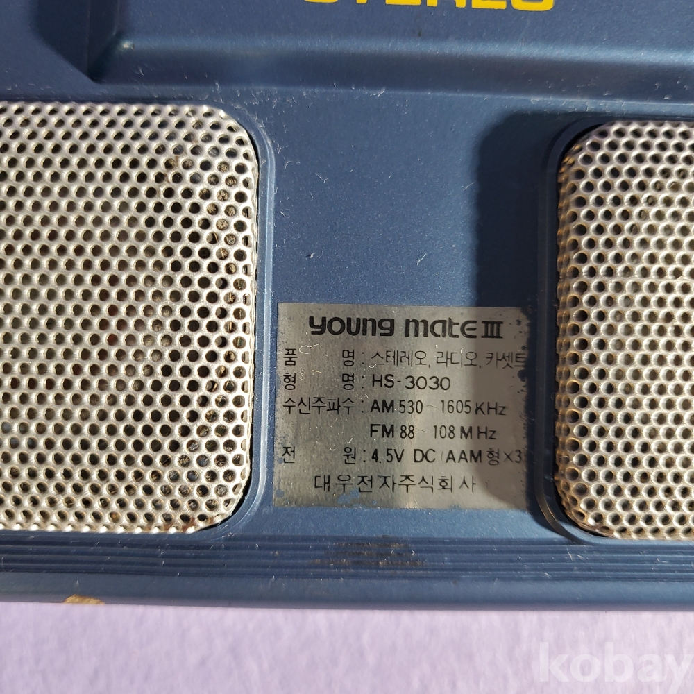 1. 설명 - [역사적 사료/빈티지 오디오] 1980년대 워크맨 시대의 향수를 짙게 품은 대우전자의 명기, '영메이트 III' 1980년대 대한민국 포터블 카세트 시장의 황금기, 삼성의 마이마이(mymy), 금성(LG)의 아하(AHHA)와 함께 당대 청춘들의 어깨를 들썩이게 했던 대우전자의 야심작 '영메이트 III (young mate III) MODEL HS-3030'입니다.