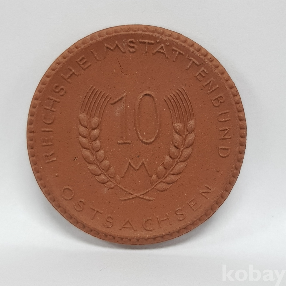 - 1921년 독일 37mm 놋겔트 10마르크 도자기 토큰(주화)