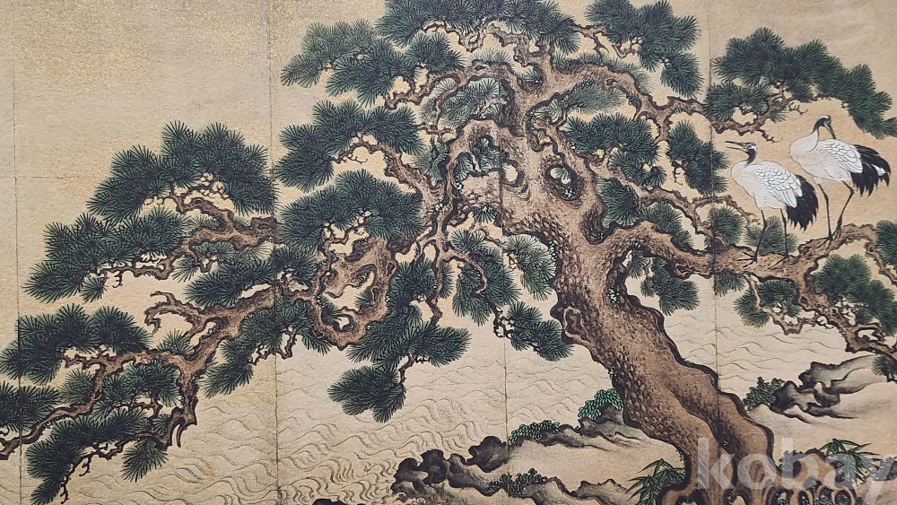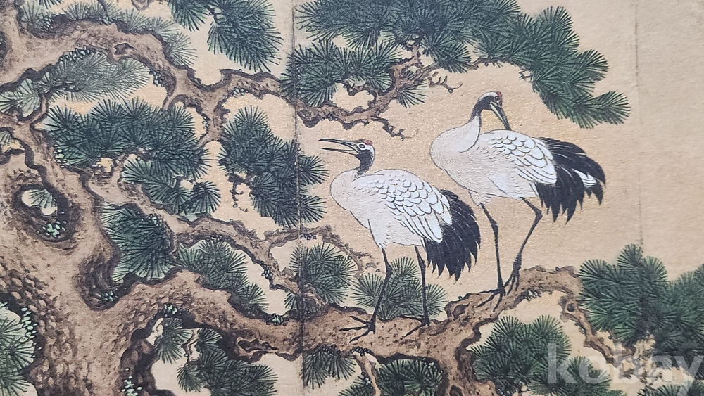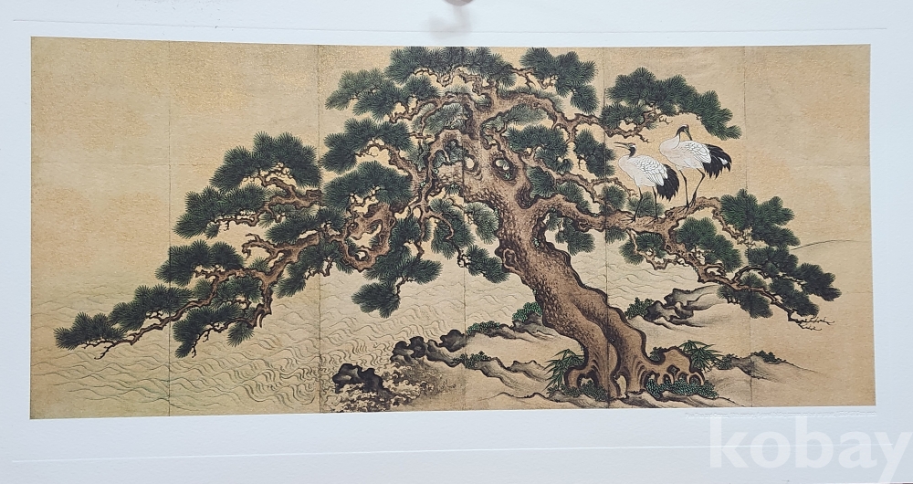 한국의 채색화 송학도(松鶴圖) 압인(壓印)판화입니다,