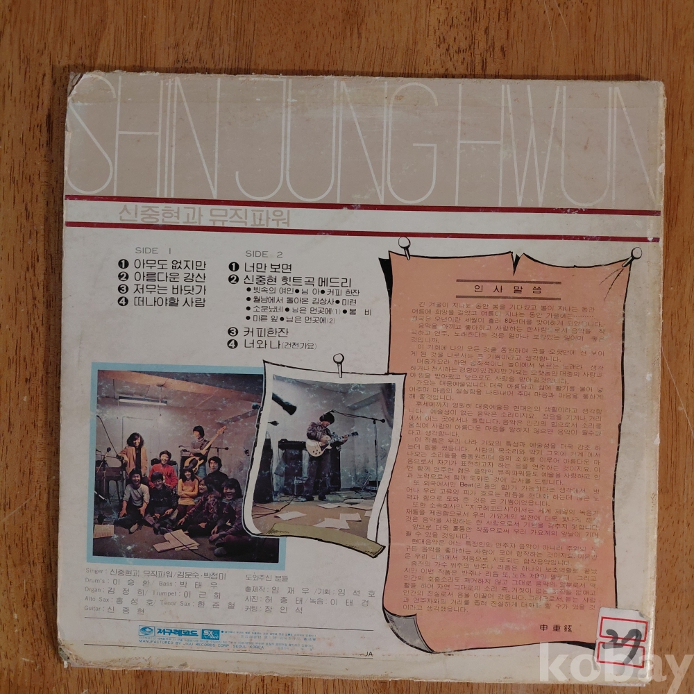 | 자켓상태 | EX : 약간의 마모, 모서리 찢김 존재 | 음반상태 | EX : 재생에 영향 없는 가벼운 기스 존재 | 발매정보 | 초반 | 가사지여부 | 무 |