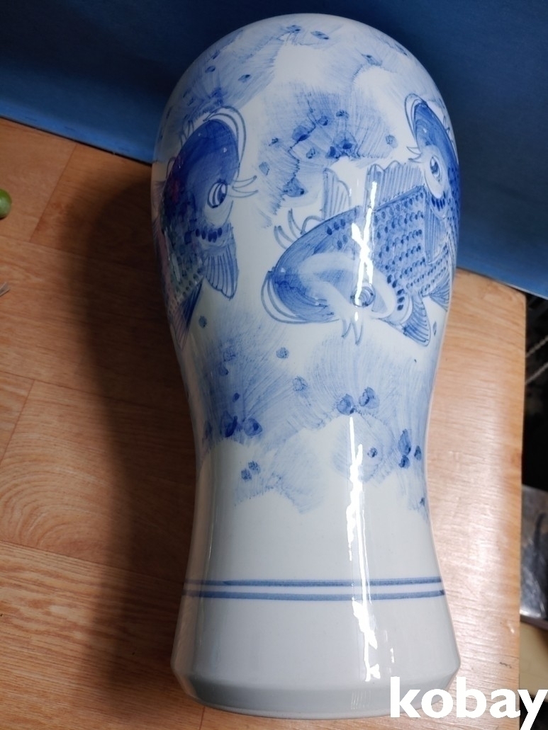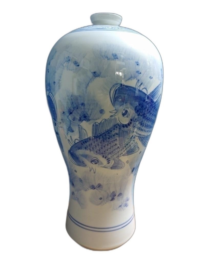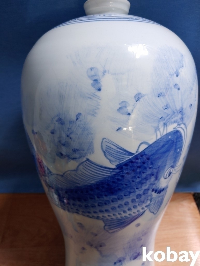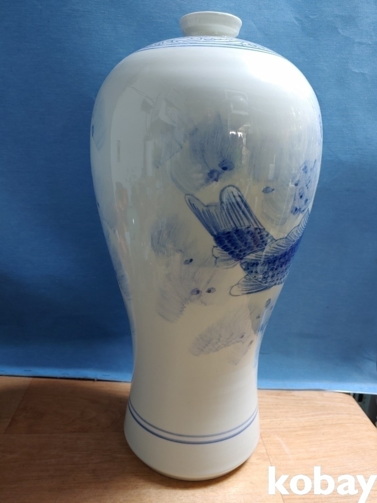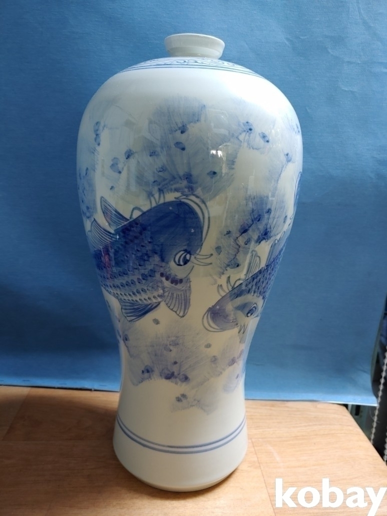 3마리의 잉어가 있는 매병 도자기 입니다.
