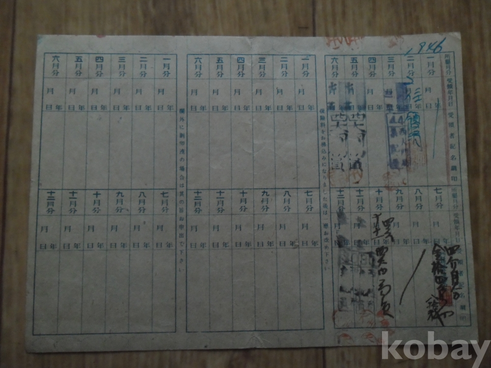 1946년 체신부 발행 보험료영수장(총독부용지사용)