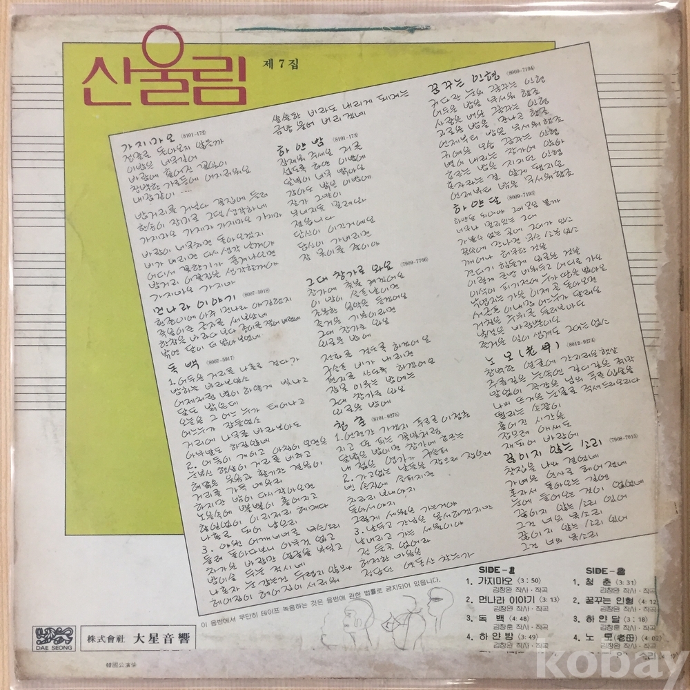 . 가요음반 대부분은 휘어짐이나 손상을 방지하기 위해 무지싱글자킷을 하나 더 사용하여 보관되었던 음반들입니다.
