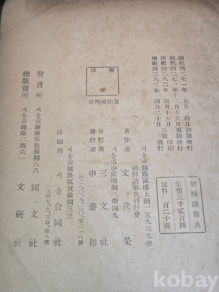 오래된 책들로 구김, 얼룩 부분손상등이 있으나 별도의 특기사항이 없을경우 낙장없이 온전합니다.