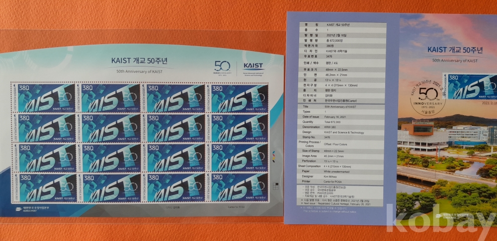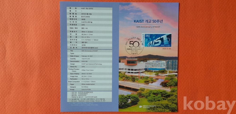 2021년 KAIST 개교 50주년 16매 전지(안내카드 포함) 입니다.
