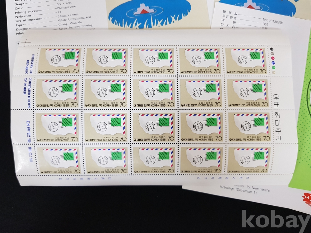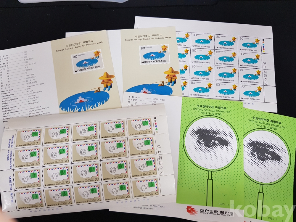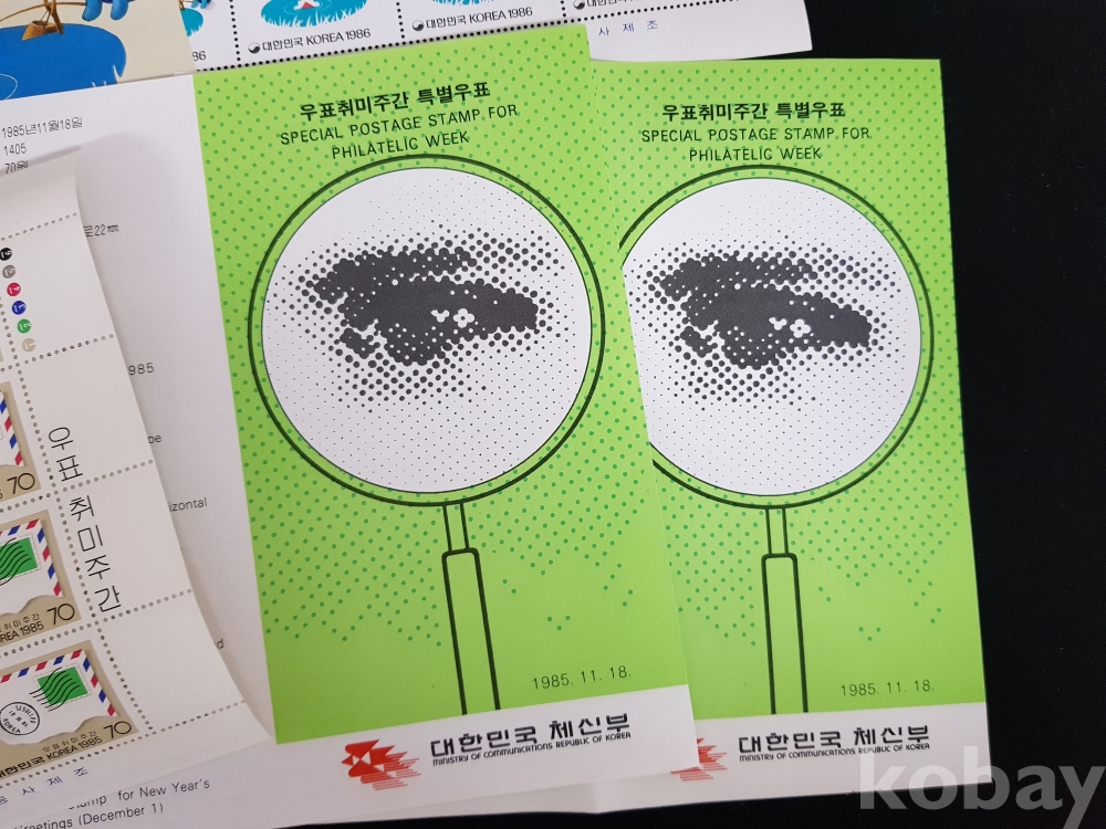 - 1985년 우표취미주간 기념 등 전지, 시트, 안내카드 등