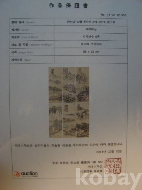 오래된 시은 박이화(市隱 朴貳和)의 산수화 6곡(33.5×83.5×6)입니다.