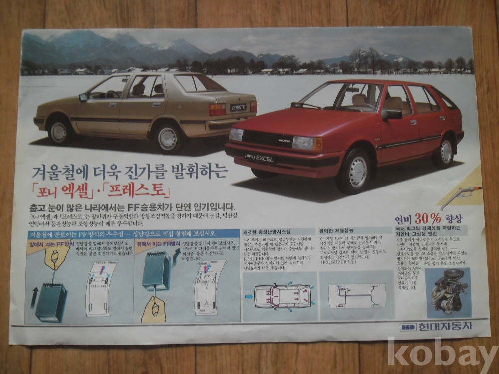 현대자동차 포니 엑셀. 프레스토 홍보 리플릿