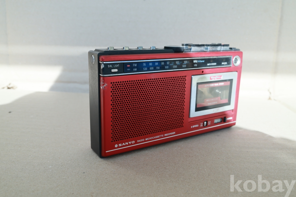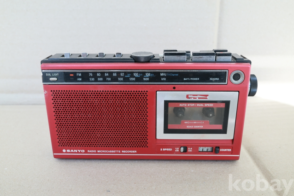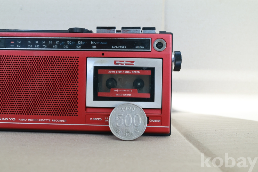 - 1980년대 중반에 출시된 산요의 마이크로 카세트 라인업 중에서도 매우 보기 드문 강렬한 레드 컬러 모델입니다. 일반 카세트보다 작은 마이크로 카세트를 사용하는 특유의 '메카니컬한' 감성과 콤팩트한 디자인이 특징입니다. 당시 고급 기종에만 들어가던 다이얼 라이트(Dial Light)와 TV 음성 수신 기능이 탑재되어 소장 가치가 매우 높습니다.