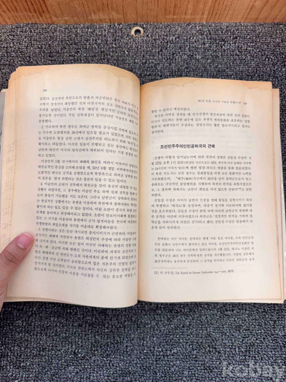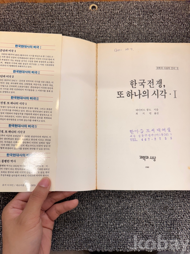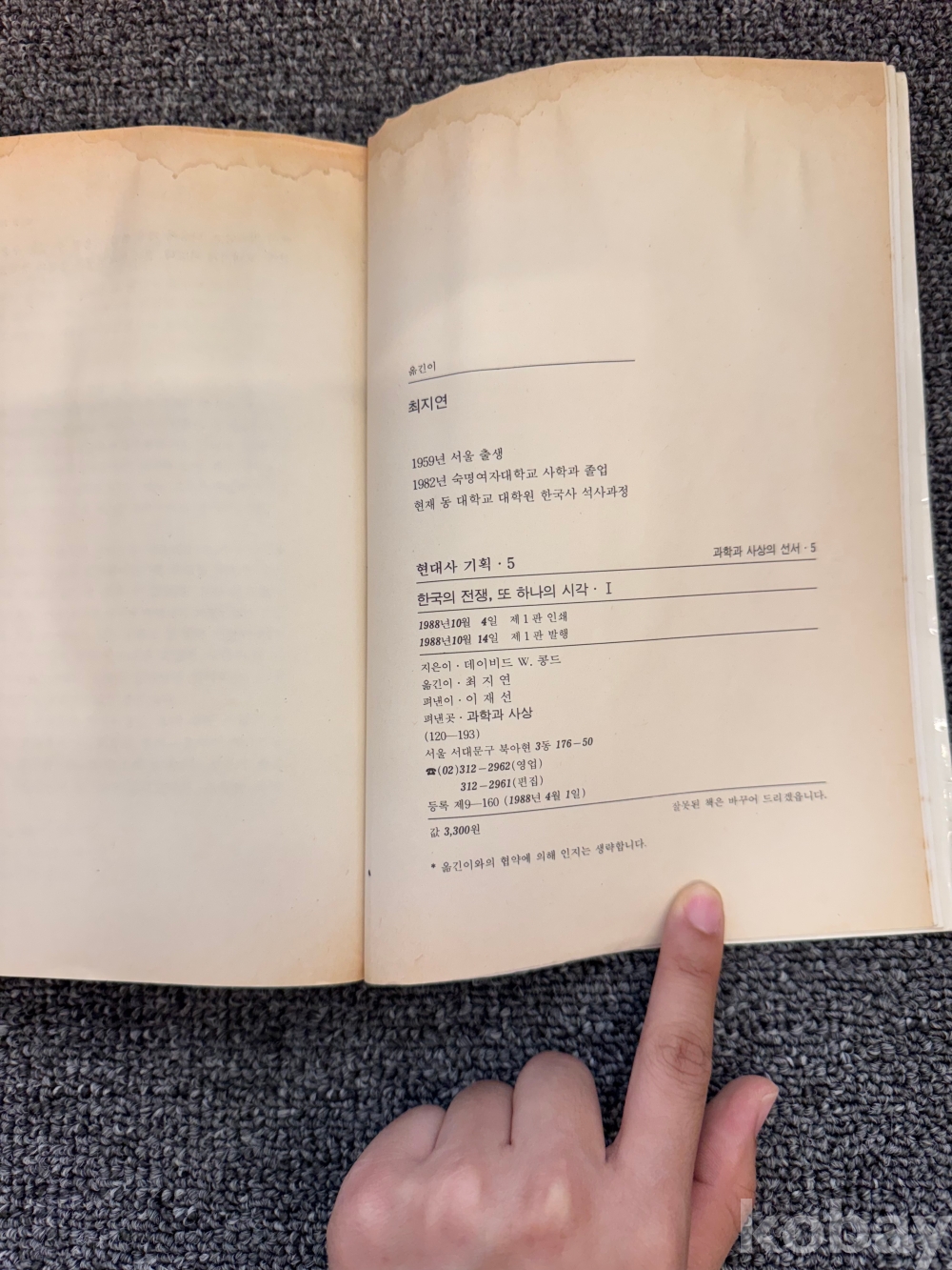 [한국현대사, 6.25전쟁] 데이비드 콩드, 최지연 옮김, <한국전쟁 또 하나의 시각1>, 과학과 사상, 1988, p. 269, 상태 하급(책등 부분 손상으로 테이프, 전체적 젖은 흔적, 사진참조)