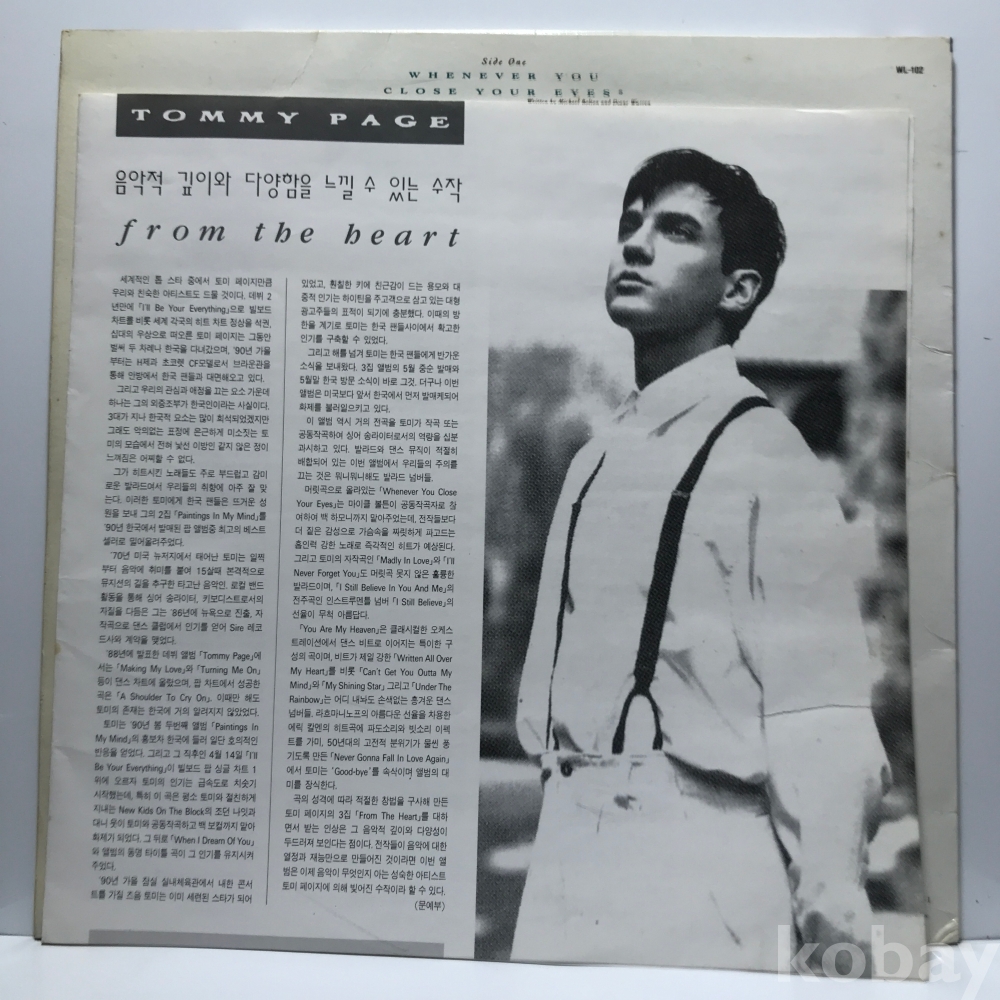 LP 83,820-45 Tommy Page - From the Heart _ 자켓 EX 알판 EX 91 년 국내반
