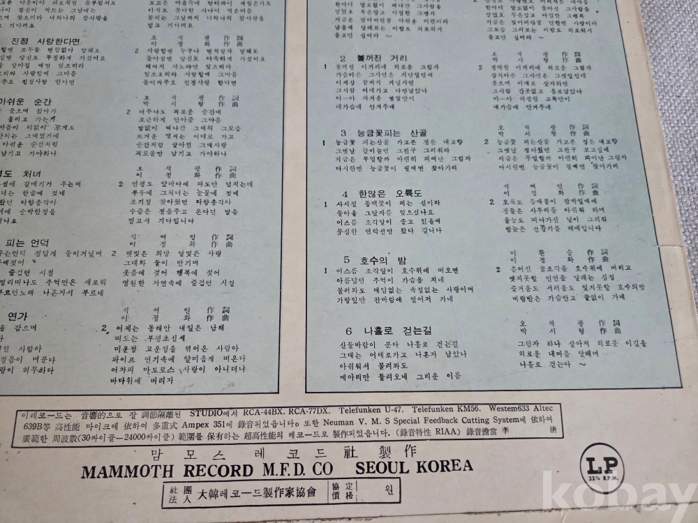 | 자켓상태 | EX : 약간의 마모, 모서리 찢김 존재 | 음반상태 | EX : 재생에 영향 없는 가벼운 기스 존재 | 발매정보 | 초반 | 가사지여부 | 유 |