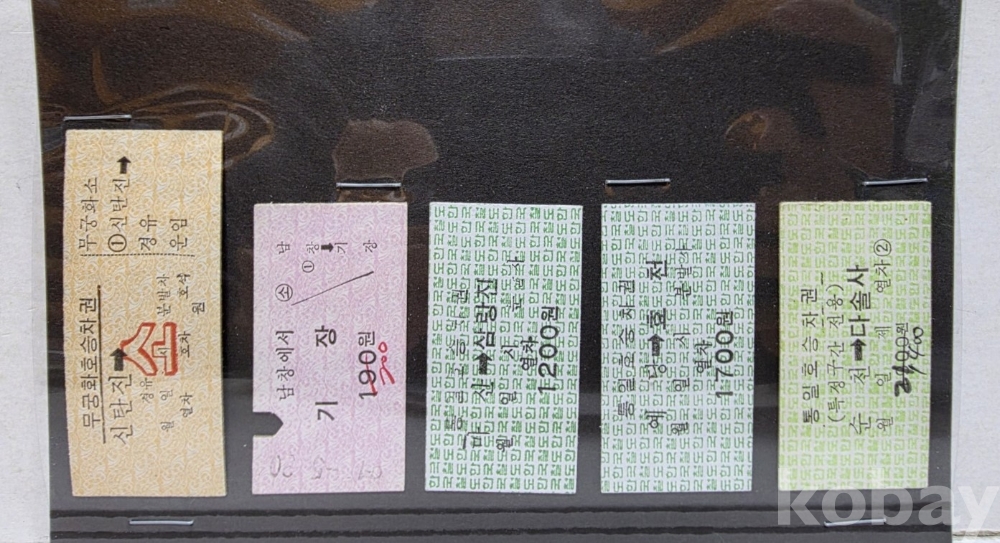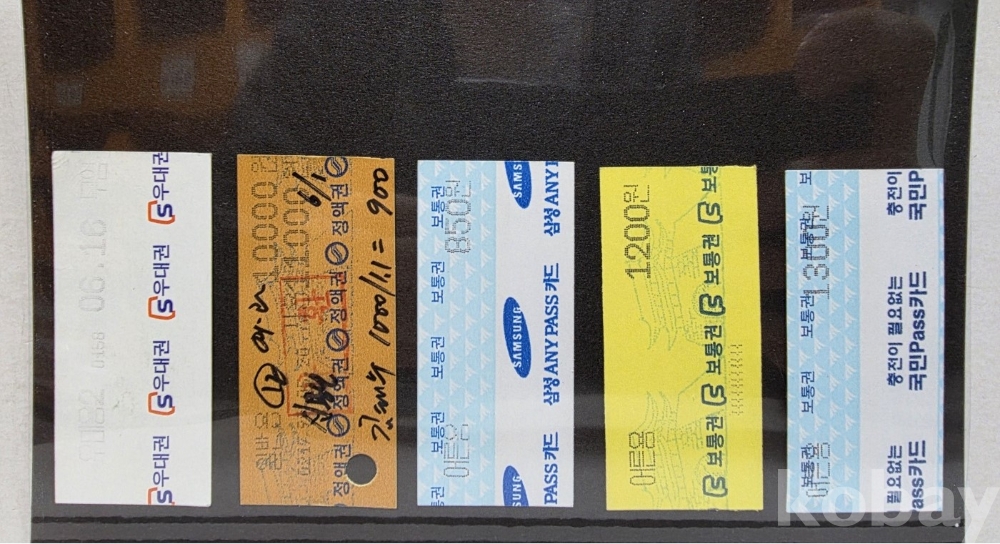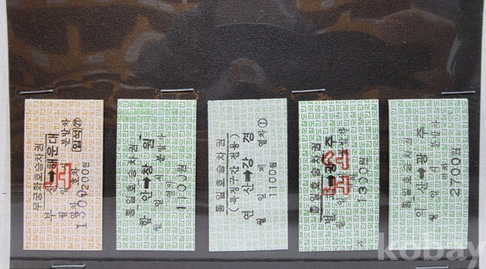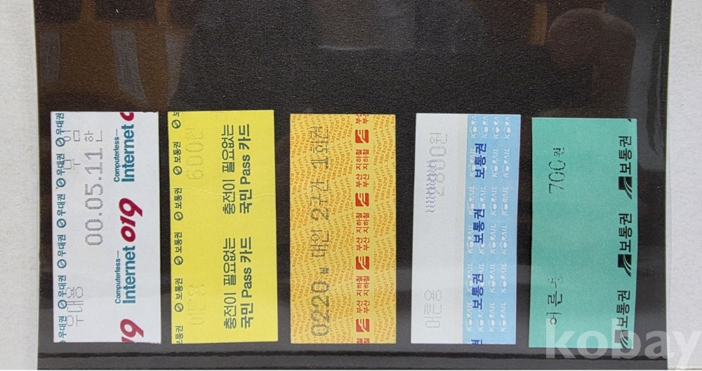 -기차, 지하철, 버스표등 다양합니다.