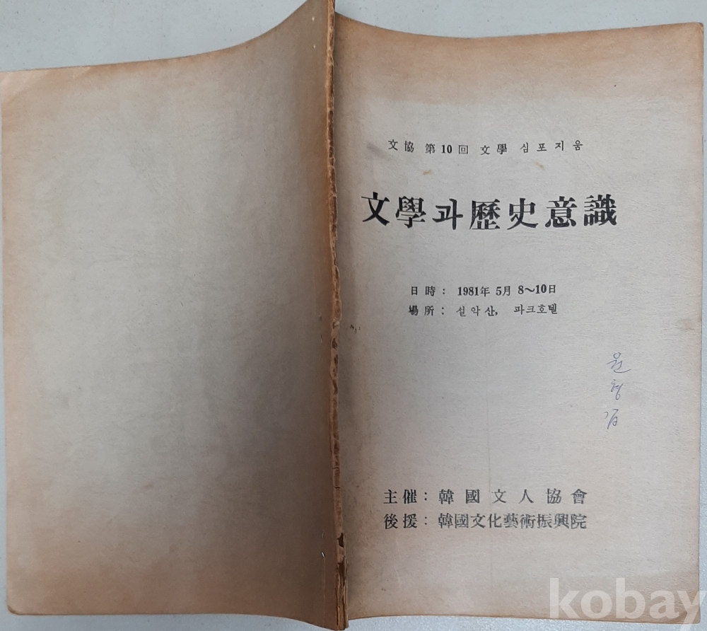 문협 제10회 문학심포지움 자료-발제자 문덕수, 일시: 1981년 5월 8일~10일 장소:설악산 파크호텔, 문학평론가 원형갑 필기분, 한국문화예술진흥원 후원, 반품불가, 반품시 반품비용 구매자부담조건 판매, 사이즈는 정확하지 않음