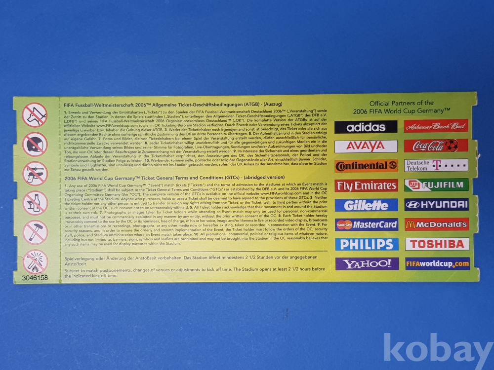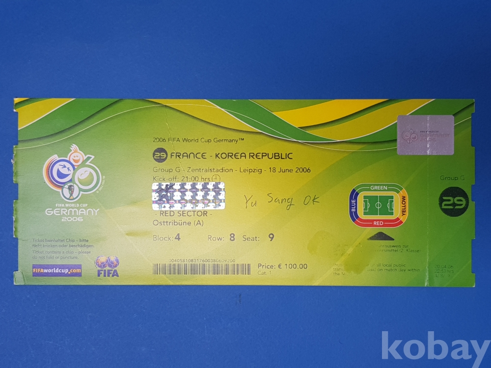 [w31] 2006 FIFA 월드컵 독일 티켓/프랑스-대한민국/G조 - 첸트랄슈타디온 - 라이프치히 - 2006년 6월 18일
