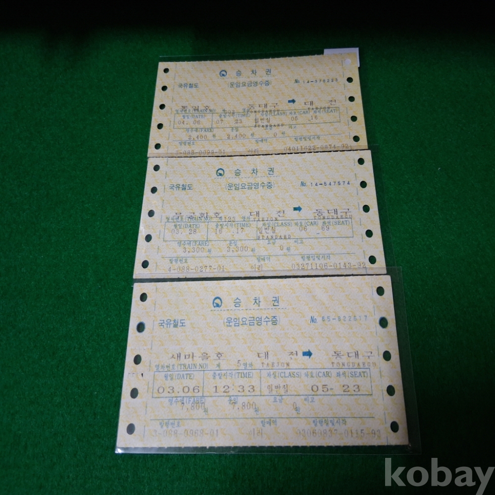 국유철도 새마을,무궁화,통일호, 승차권 3매 사용제