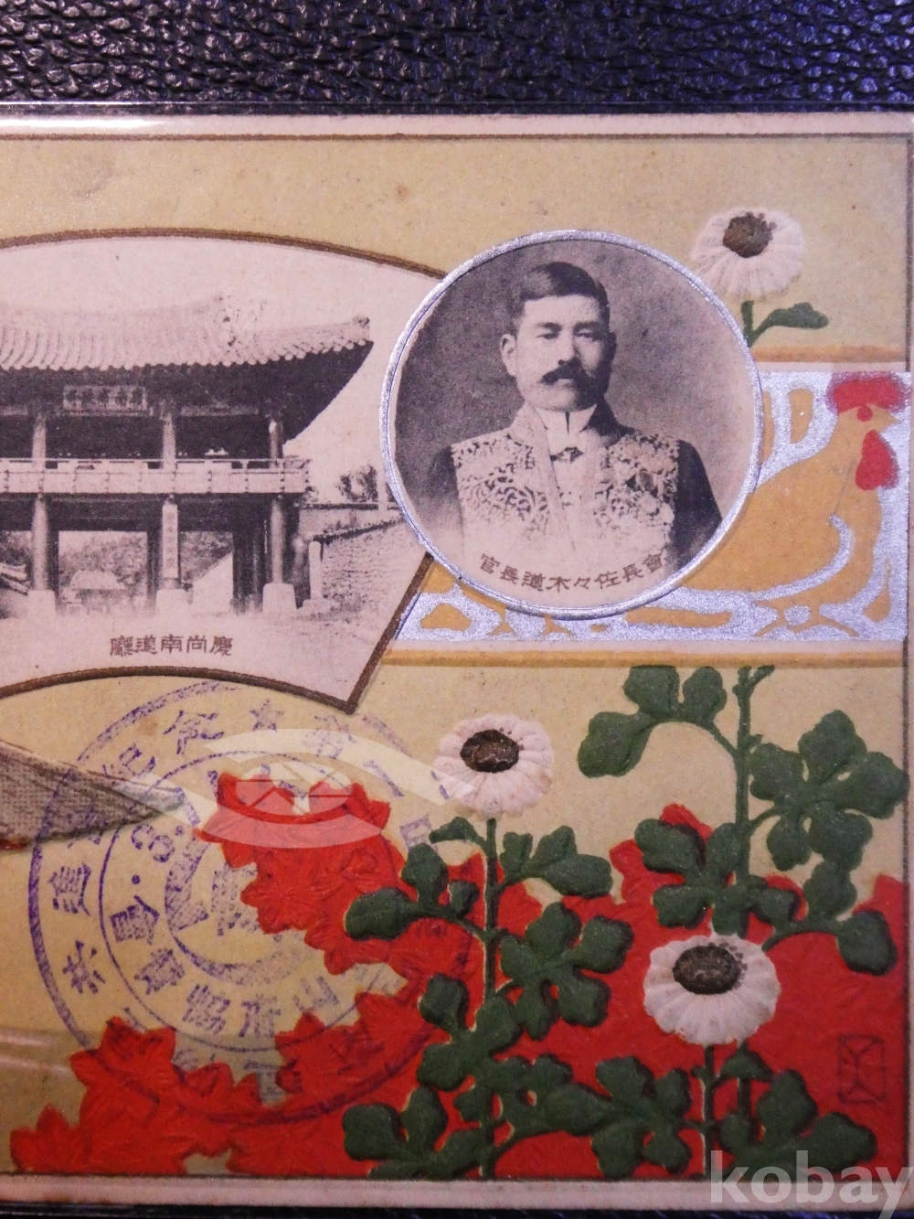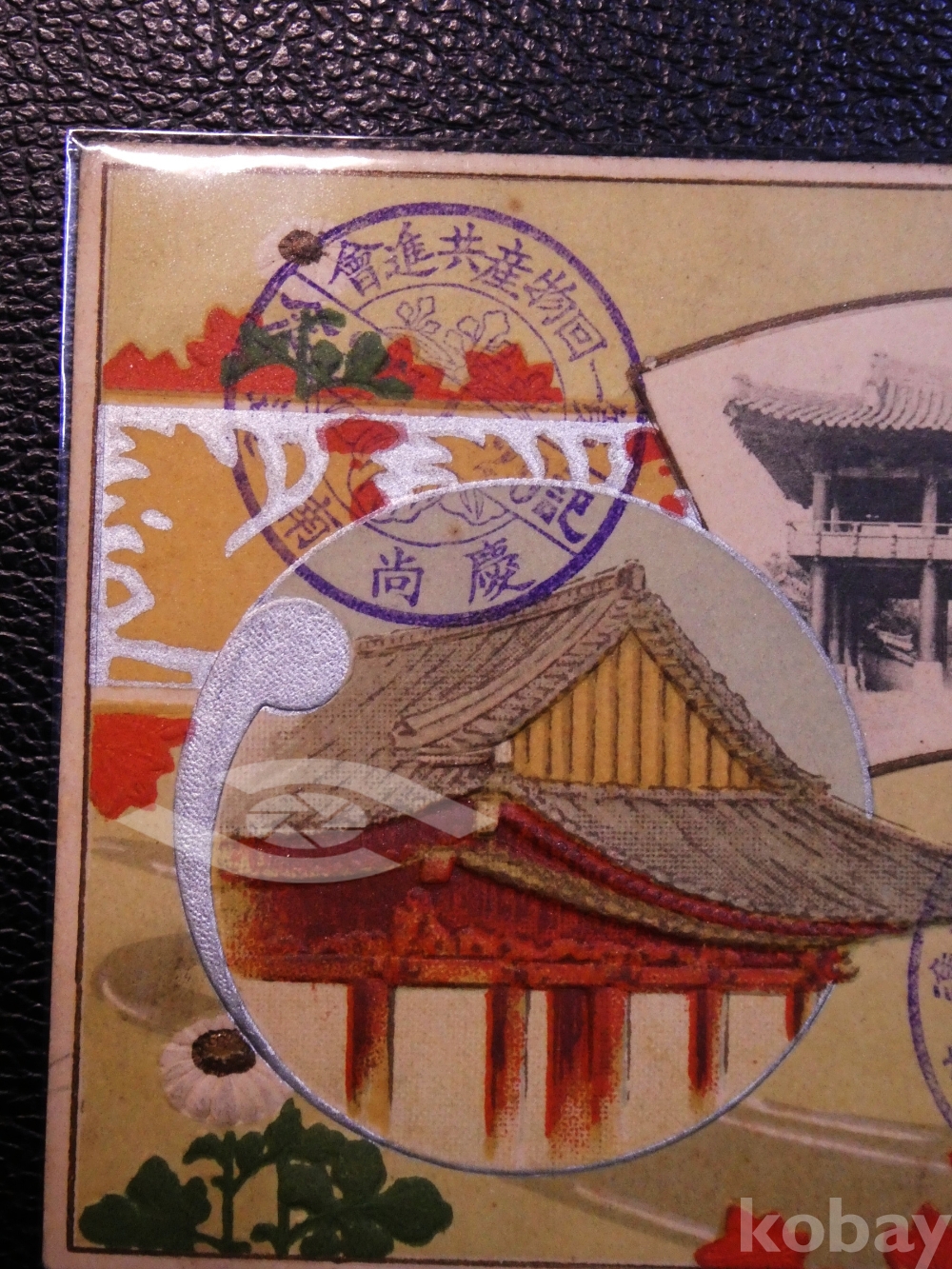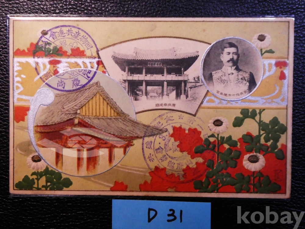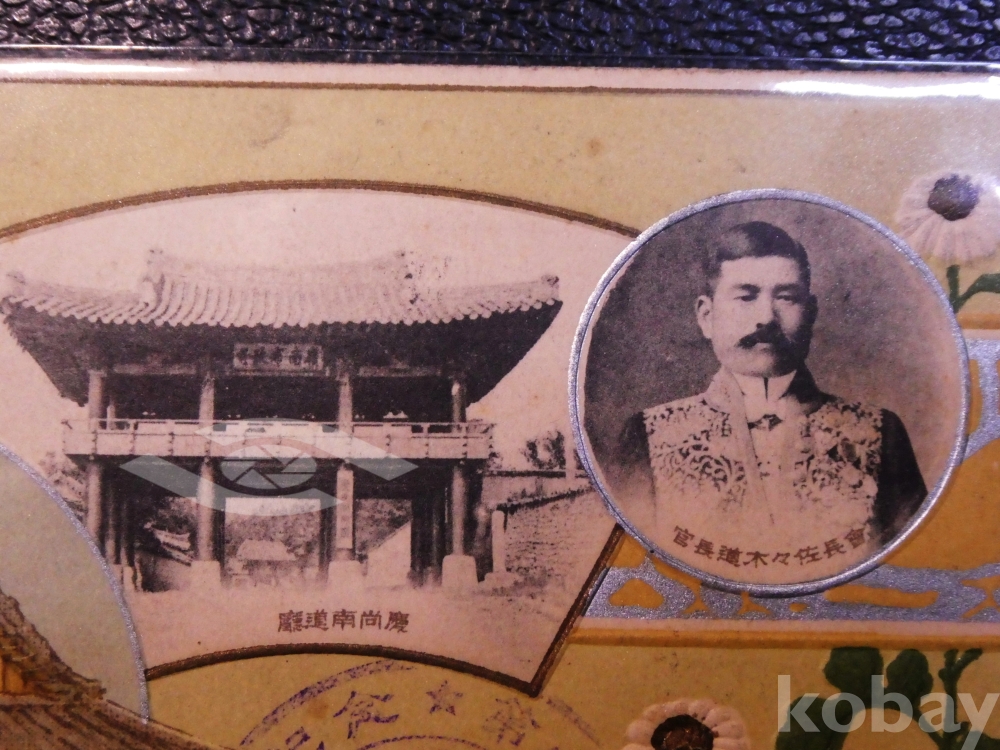▣근대한국 엽서(진본): 경상남도 제1회공진회 기념엽서, 기념인 날인, 경상남도 초기 도청 한옥건물(희귀), 회장인 사사키 도장관/1매.