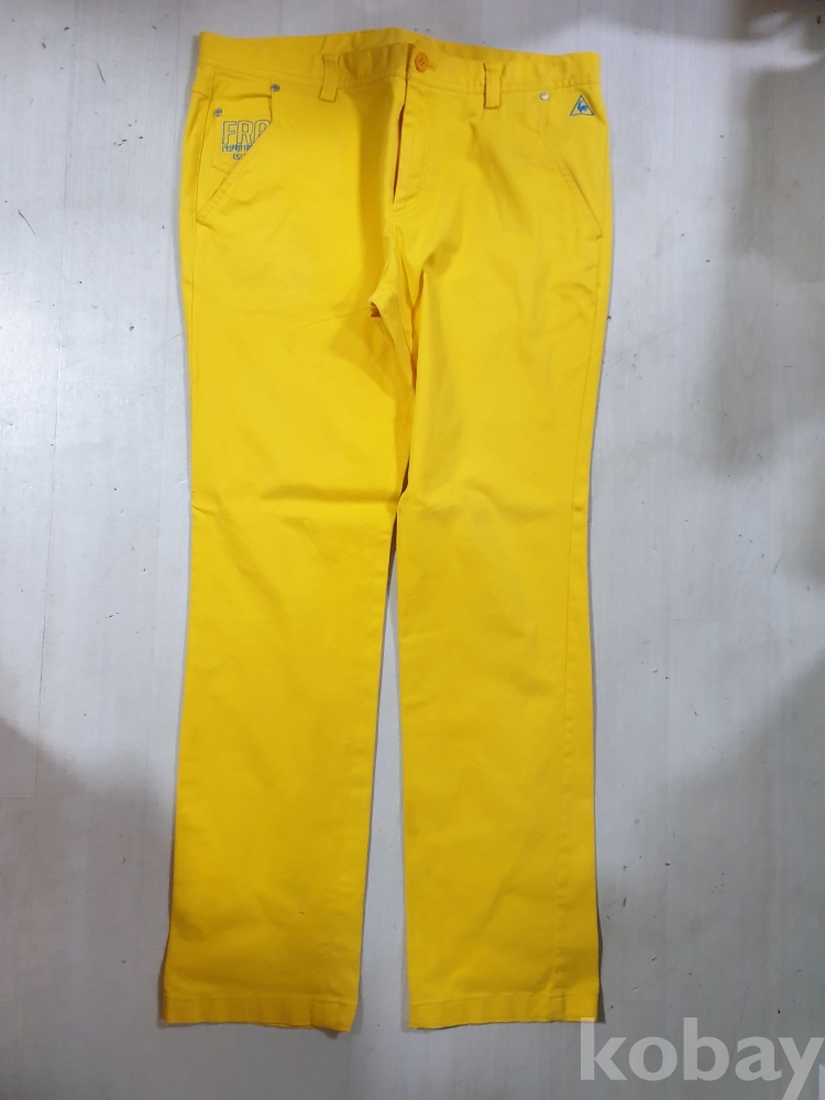 {천원경매}3- 0245 르꼬끄 골프 노랑 바지 (오염있음, 허리둘레90cm)