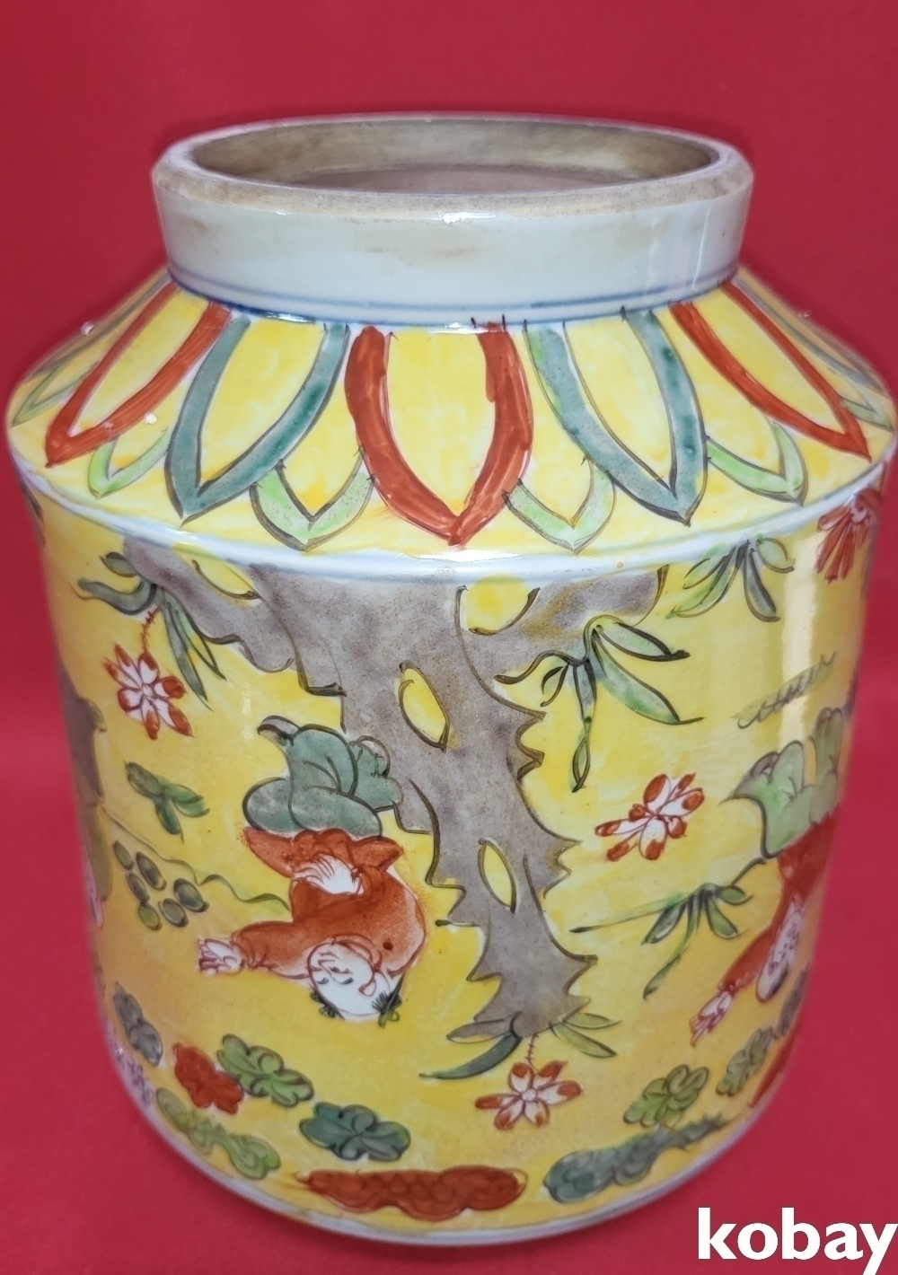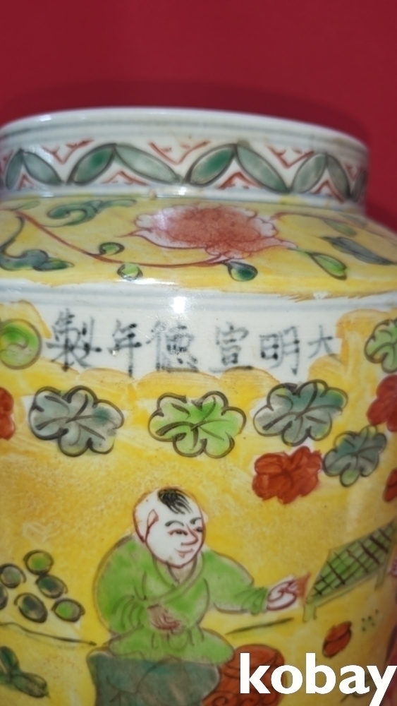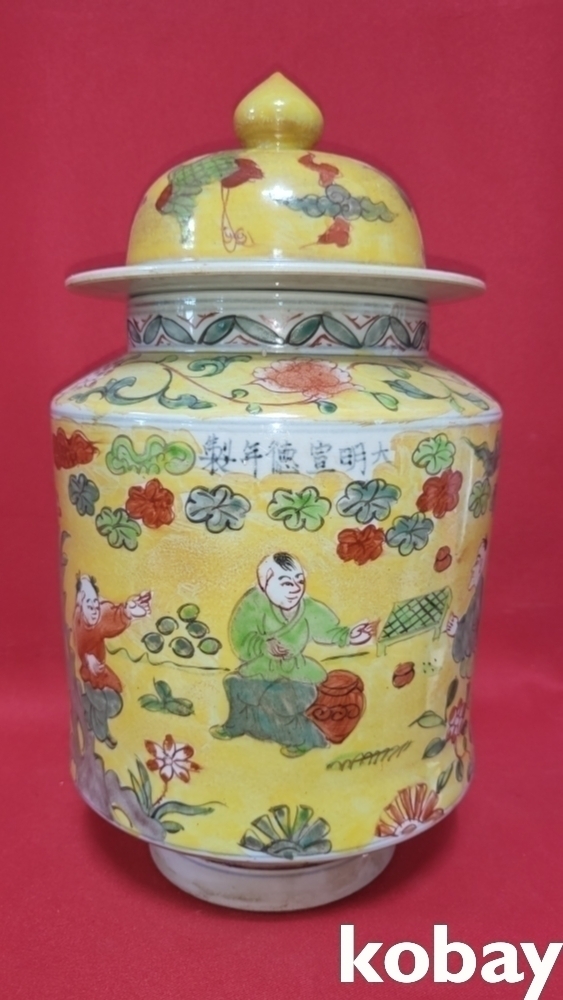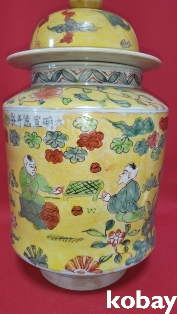 대명선덕연제 관지 황지 바닥에 신선들 문양 차호입니다,