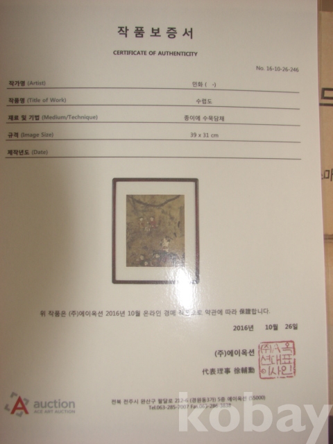 # 박피, 갈라짐 등 오래된 흔적있음. A-옥션 작품보증서 있음. 액자는 낡아 작품만 보냄.