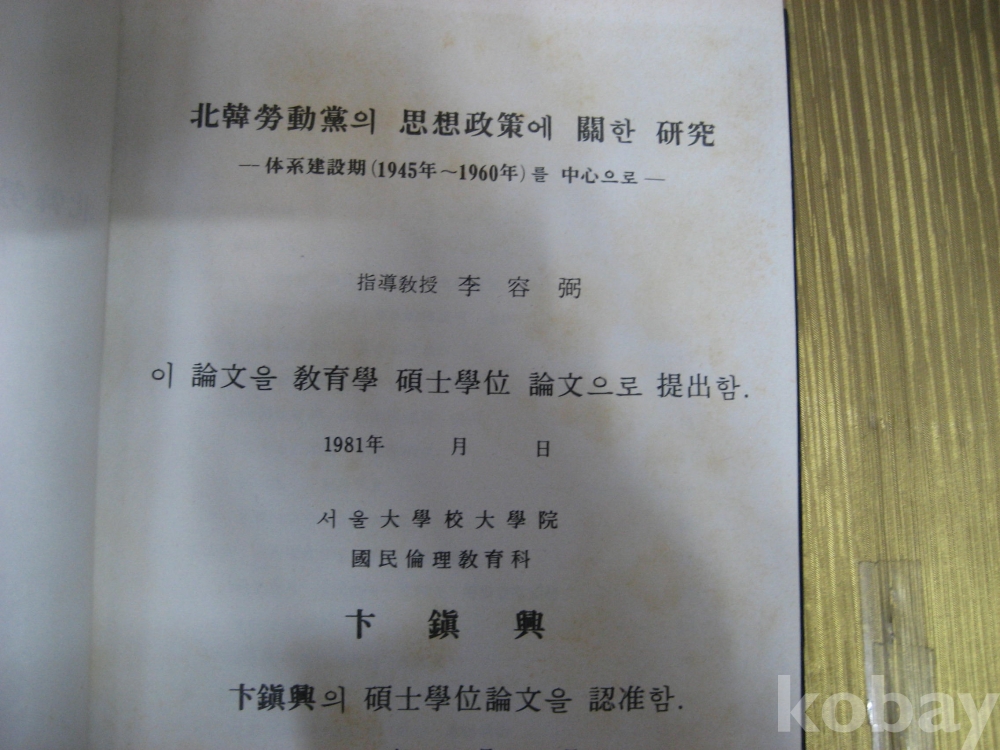 북한노동당의 사상정책에관한 연구 ,,석사논문 ,,,변진흥 지음,,,81년