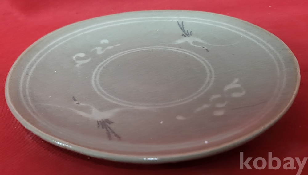 Tㅡ55호아홉 번 //// 연대감이 보이는 상감청자 쌍학(雙鶴)문양 미감정 접시입니다,