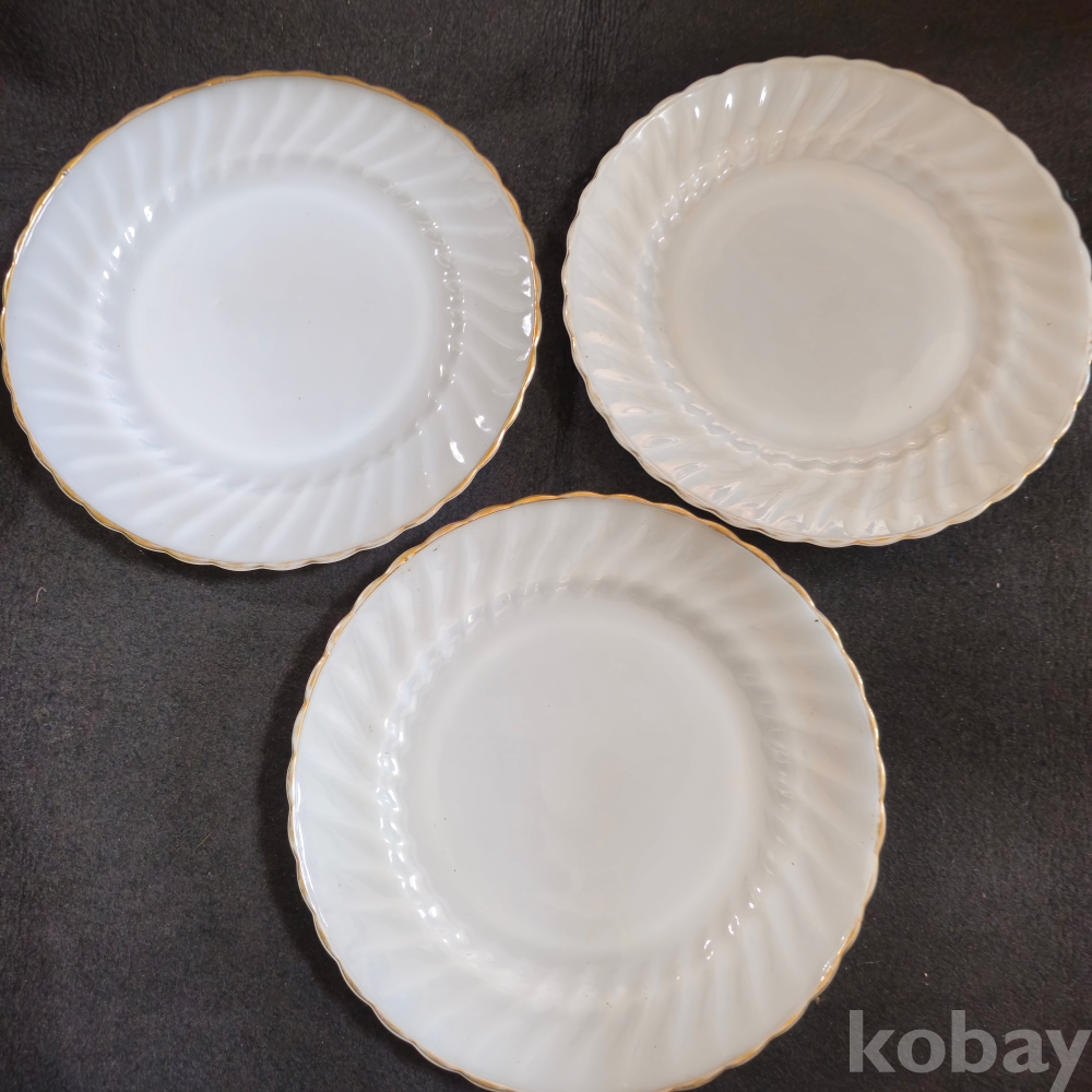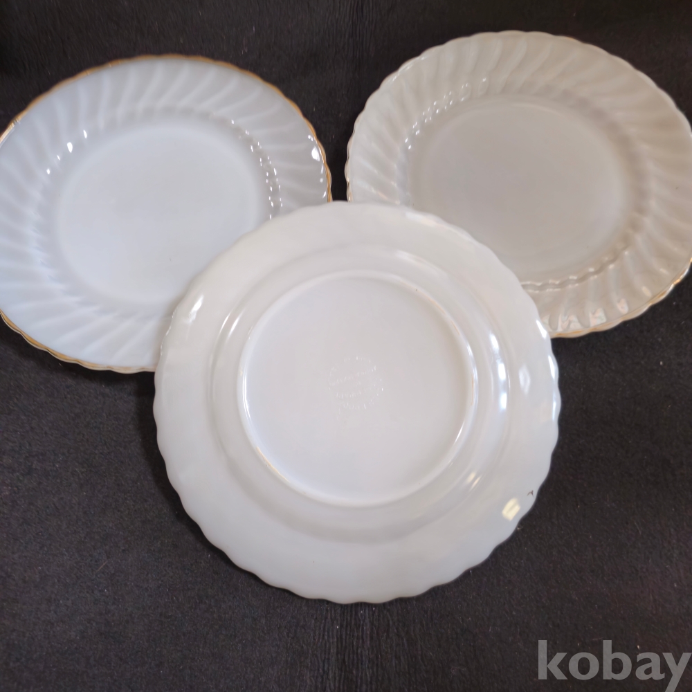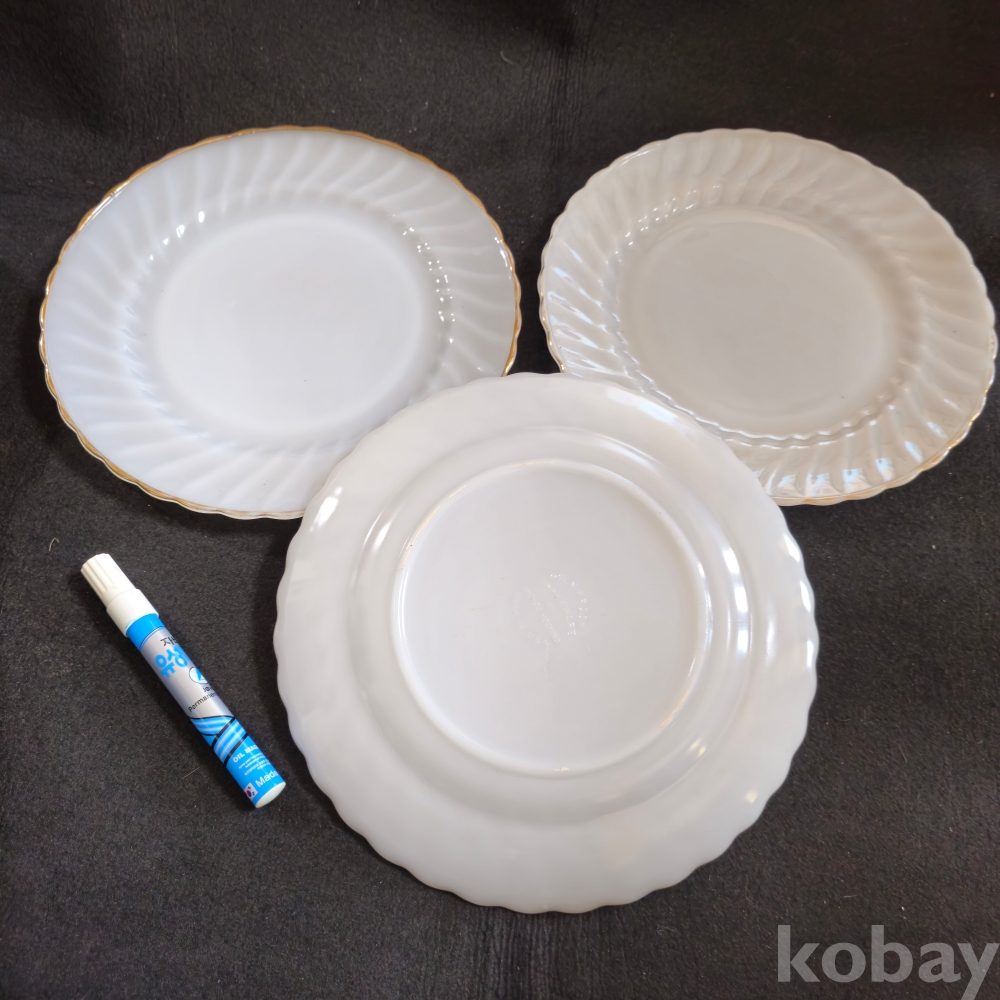 ((빈티지접시))) 오래전 미국에서만든 비교적 큼지막한 ANCHOR HOCKING (앵커호킹) 빈티지 빗살무늬 밀크 접시 3개 (지름 25.5 cm)