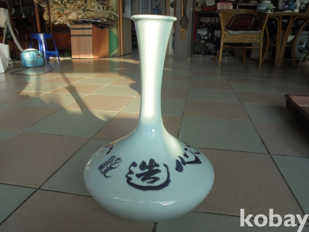 일체유심조 작가명 성월 낙관 순백자로 크고 무거우며 멋있는모형에 아주 매끈한 백자 예술적인 큰주병 높이 40 cm 입지름 8 cm