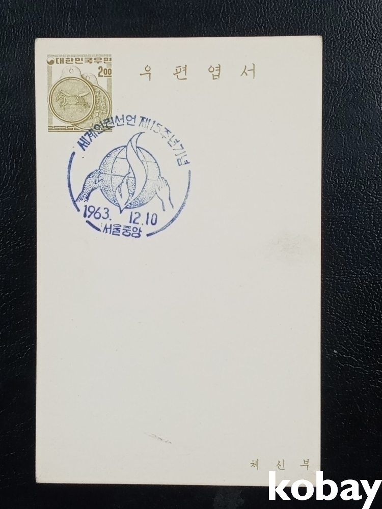 (추천) 60년대 귀한 기념일 소인 우편 엽서(마패)